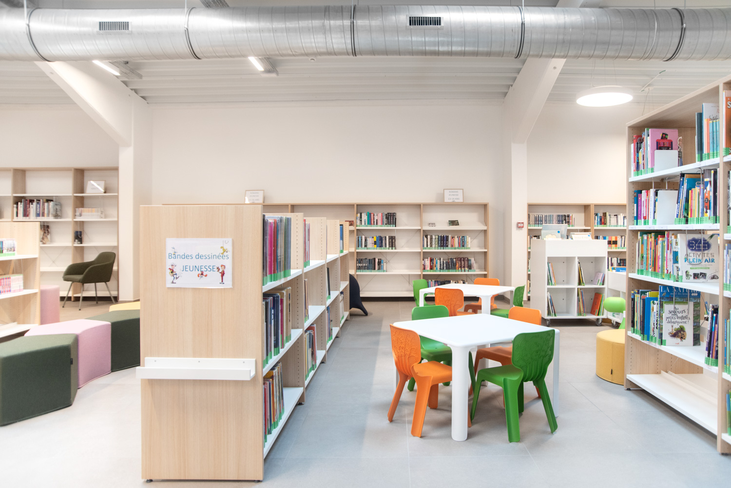 Librarian Christine Gillard elaborates: "By exposing the roof, with openings and without false ceilings, we achieved an enhanced natural light. Opting for wooden shelving and warm-hued seating has fostered the convivial atmosphere we sought. In designing the space, we had specific requirements, which Schulz successfully fulfilled."