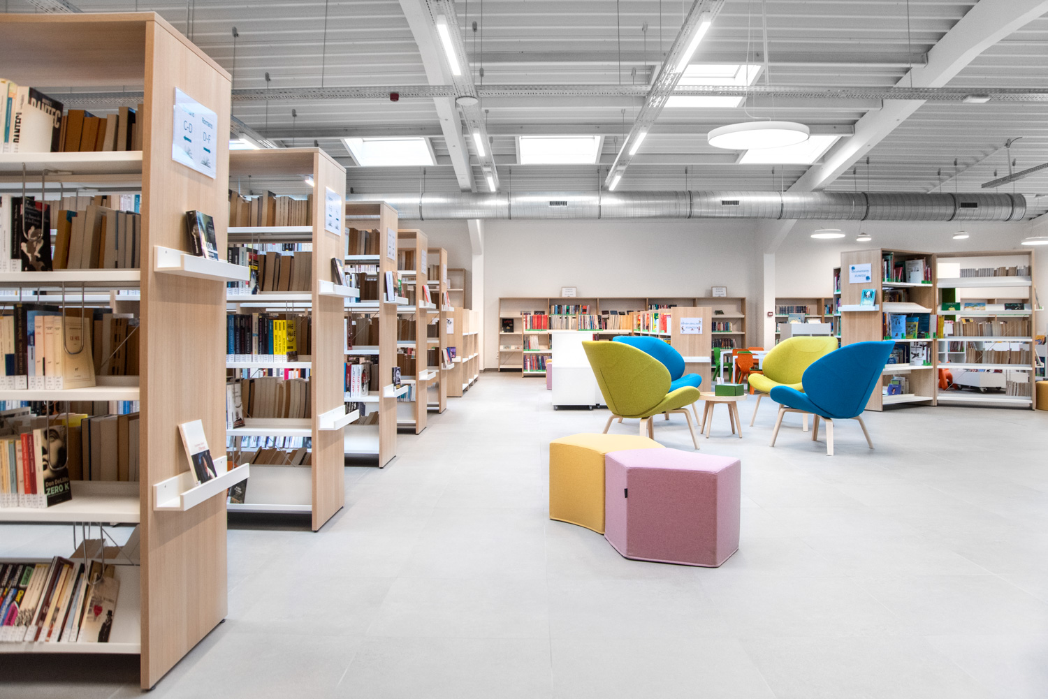 Since January 2024, the Eghezée Library has embraced a vibrant new chapter in its freshly inaugurated facility. Previously constrained by limited space, a purchasing opportunity presented itself in a building located in the center of town. Despite its initial dilapidation, the librarians opted for an industrial flair in the technical finishes, complemented by a warm, welcoming ambiance in the furnishings and layout.