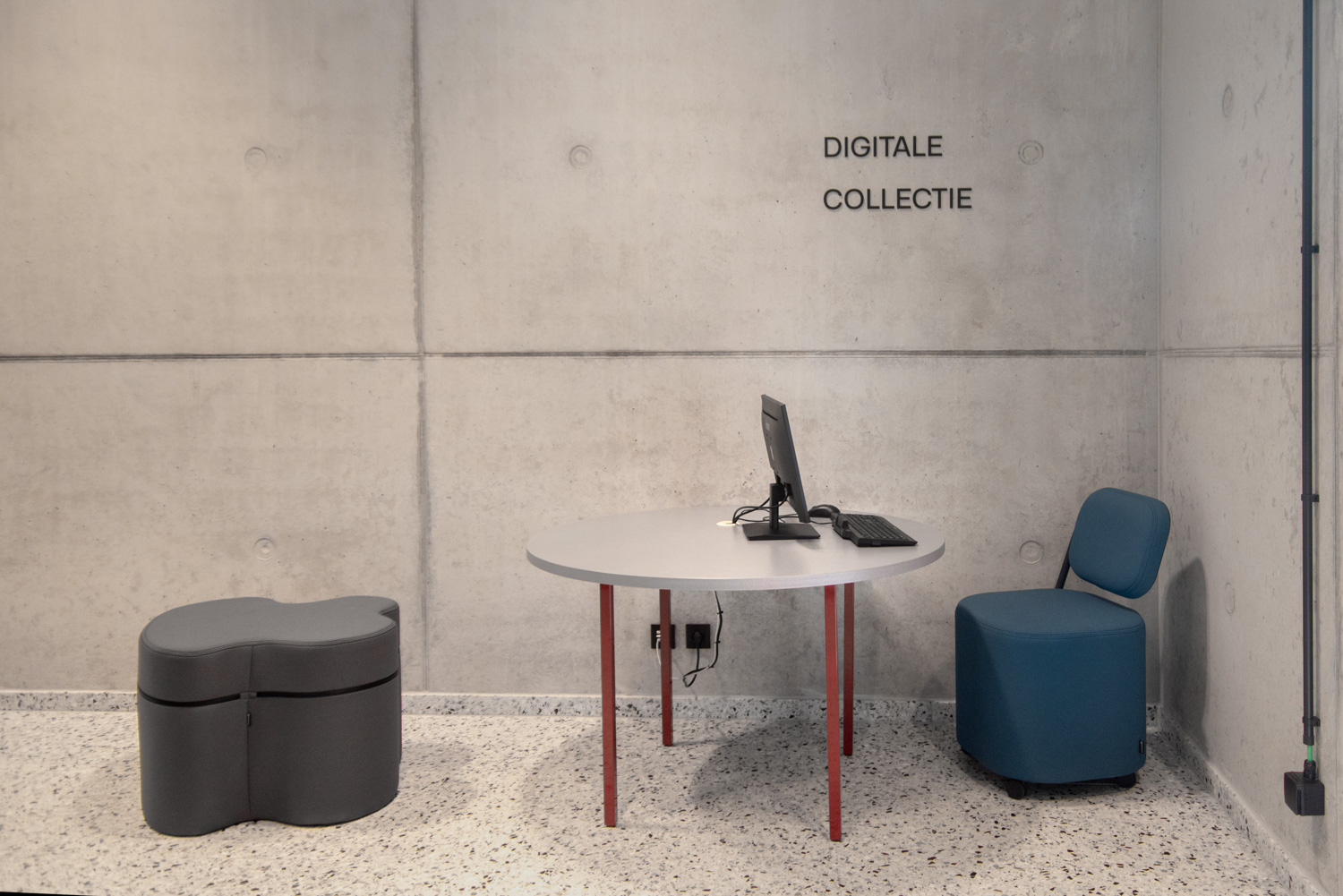 Light and space are central elements to the new library in Geraardsbergen. The library is more than just a place to borrow books; it is a space for reading, studying, playing games and much more. Visitors can choose from a variety of seating options: tables and chairs for working or studying, cosy and comfortable reading armchairs to relax in and poufs for quickly consulting a book.