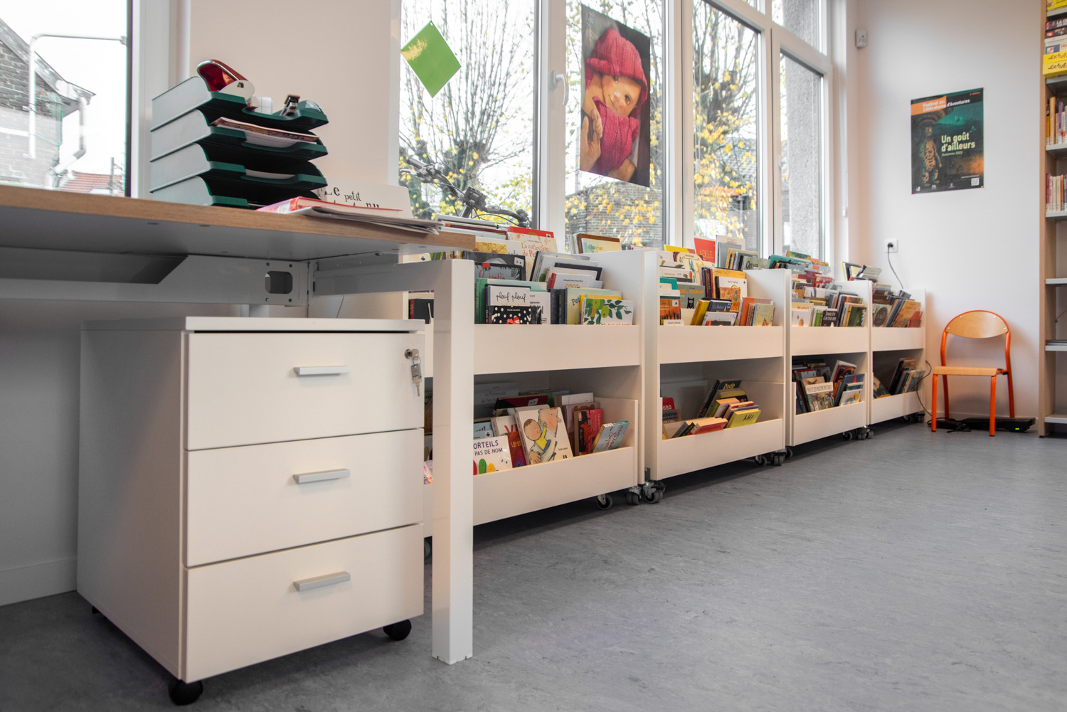 Fabienne Meul, librarian: “We chose soft, warm colours to make the library cozier. The seating furniture adds comfort and a homely feeling. Our readers are happy with the new developments. We have only received positive feedback.”