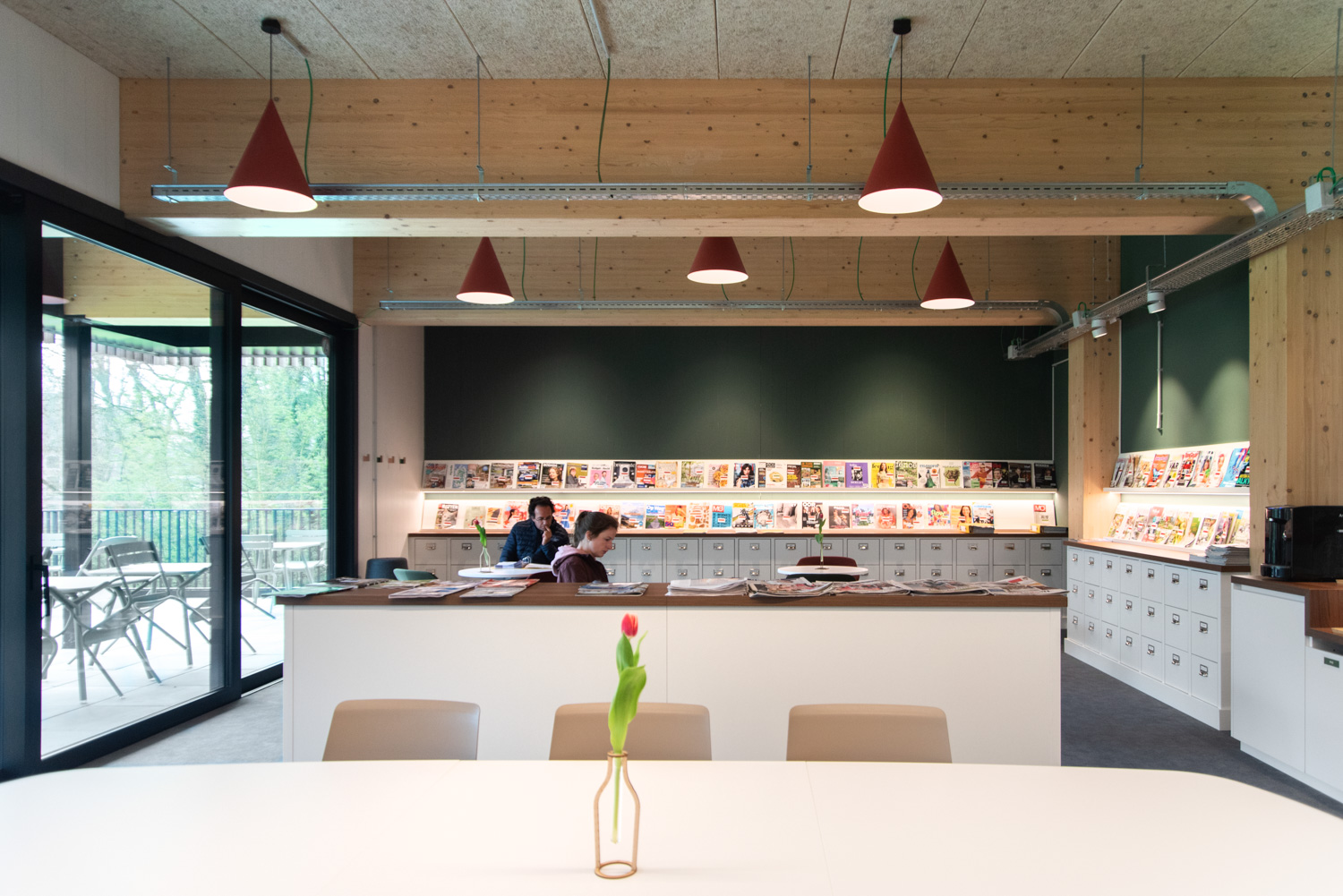 Schulz Benelux has taken care of the interior design and the selection of shelving systems, tables, seating and custom-made furniture.