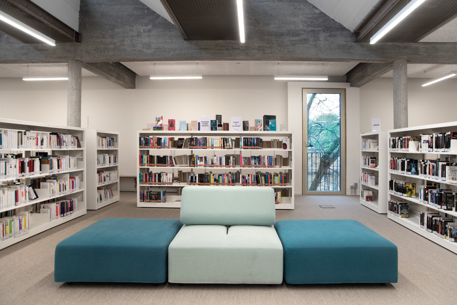 The new library is located in a fully renovated, bright and welcoming area within a cultural centre. It offers a dynamic and open environment where visitors feel instantly at home. With modern furniture and a carefully considered arrangement of shelving systems, the space ensures a seamless flow of movement throughout its spacious, light-filled interior.