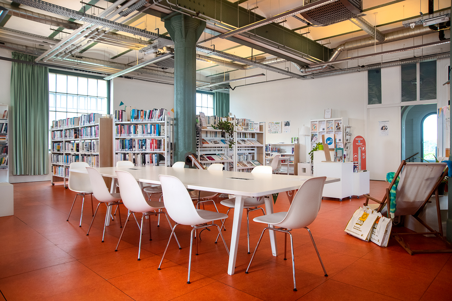 The library of Vorst is housed on the second floor of the former Wielemans-Ceuppens brewery. After years of expansion, the interior was in need of a makeover.