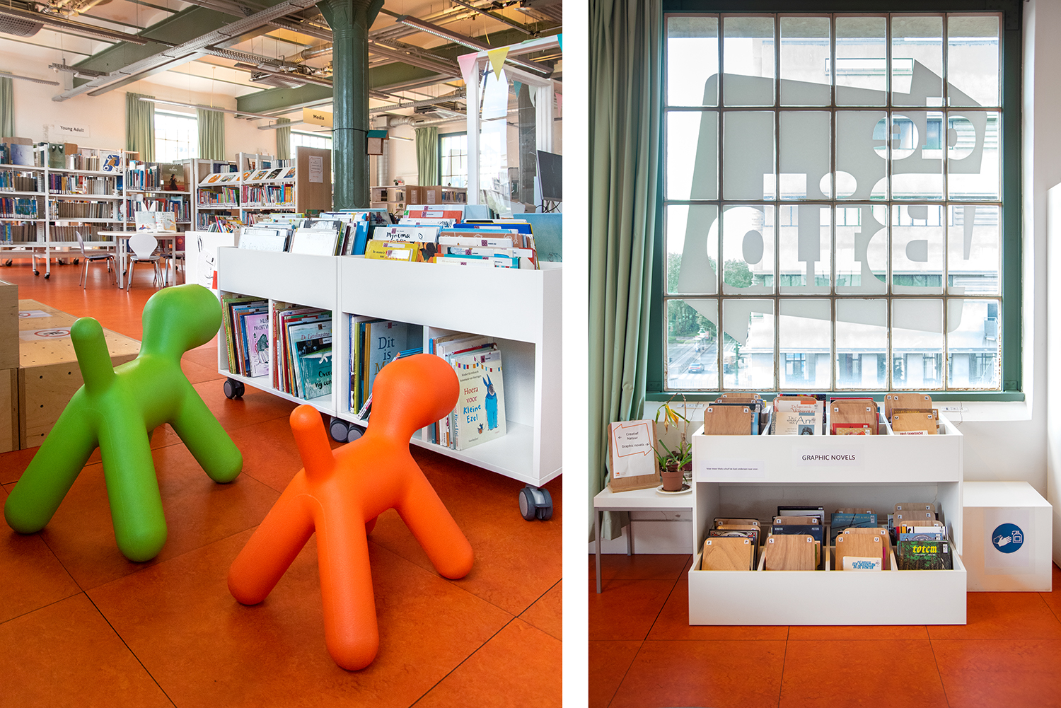 Librarian Elise Ghyselen: “Our library is a real family library. It was therefore especially important that the interior was tailored to our young and diverse audience, and borrowers who speak other languages. Clear and visually accessible signage was essential.”