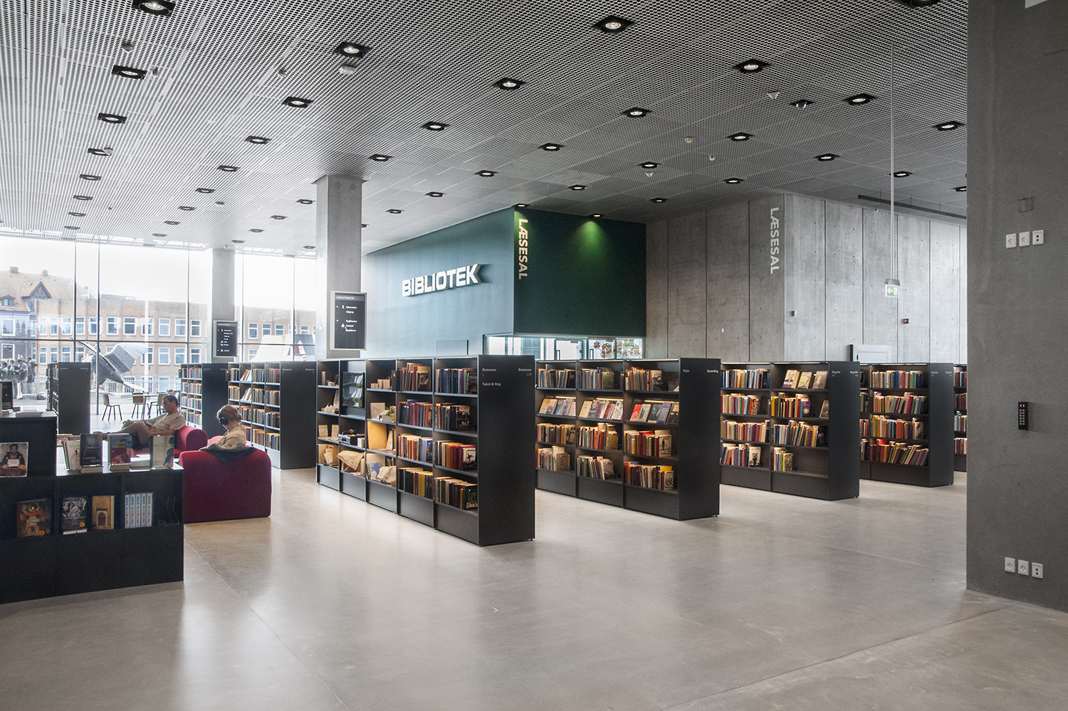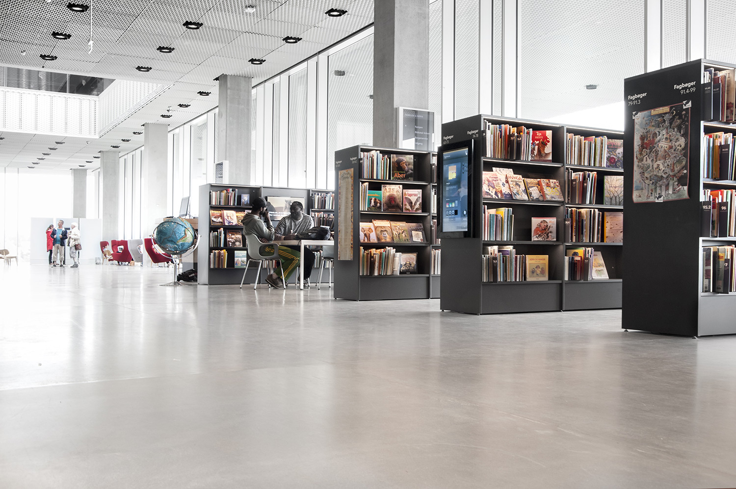 The library in Dokk1 belongs to the elite of libraries around the world. You are not in doubt of this when you walk through the main entrance into the futuristic environment. As the building houses not only the library, but also a multimedia centre and community service, the ultramodern building gives an impression of being one huge centre of knowledge and culture, with an expected attendance of at least 1 million users per year.
