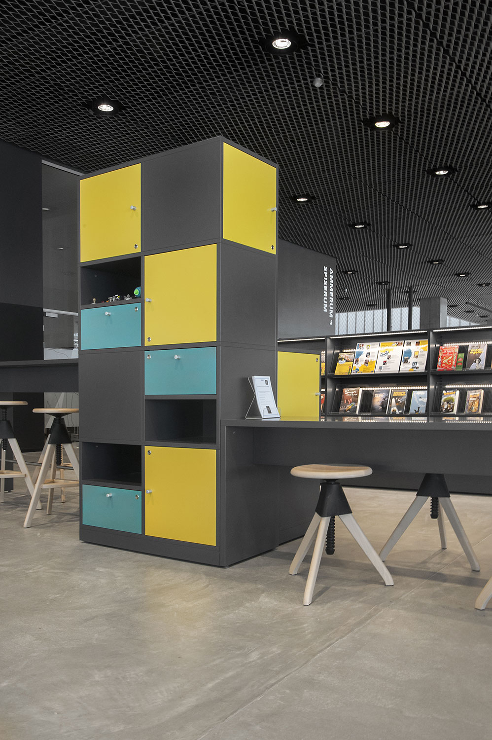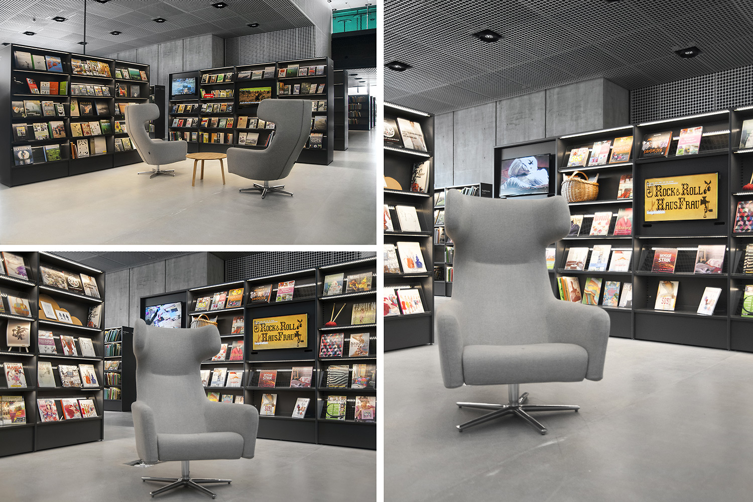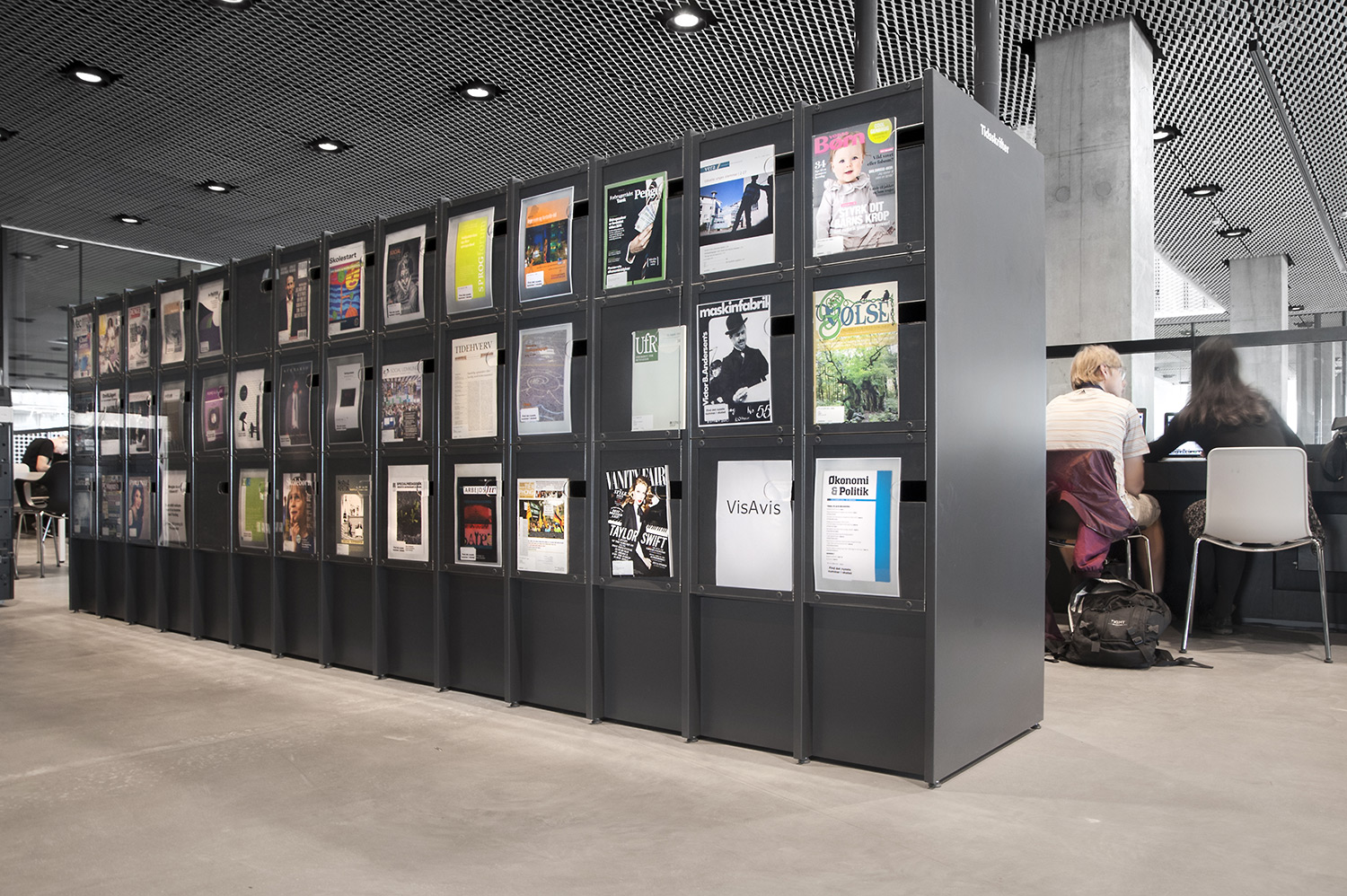 Lammhults Biblioteksdesign A/S has delivered the majority of the library furniture for the library in Dokk1 - both standard and customized solutions. The building is designed as an open, democratic roofed urban space – a landscape you can move through that allows multiple looks and space. The interior, decor and furniture reflect this design. As there was a demand to use as few types of furniture as possible in the new library, a fusion between our well known Ordrup and Frontline Square occurred – and Ordrup Square was created.