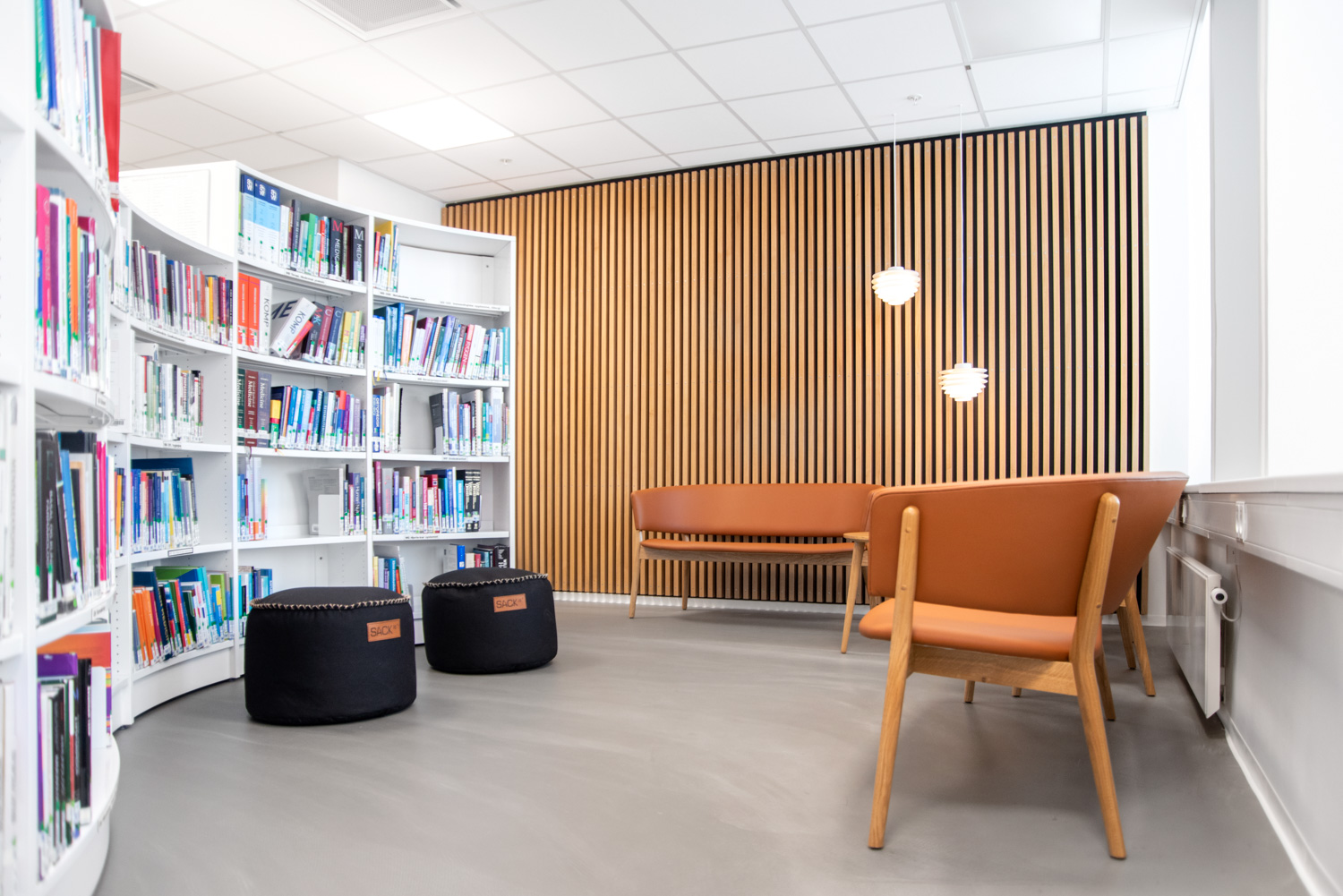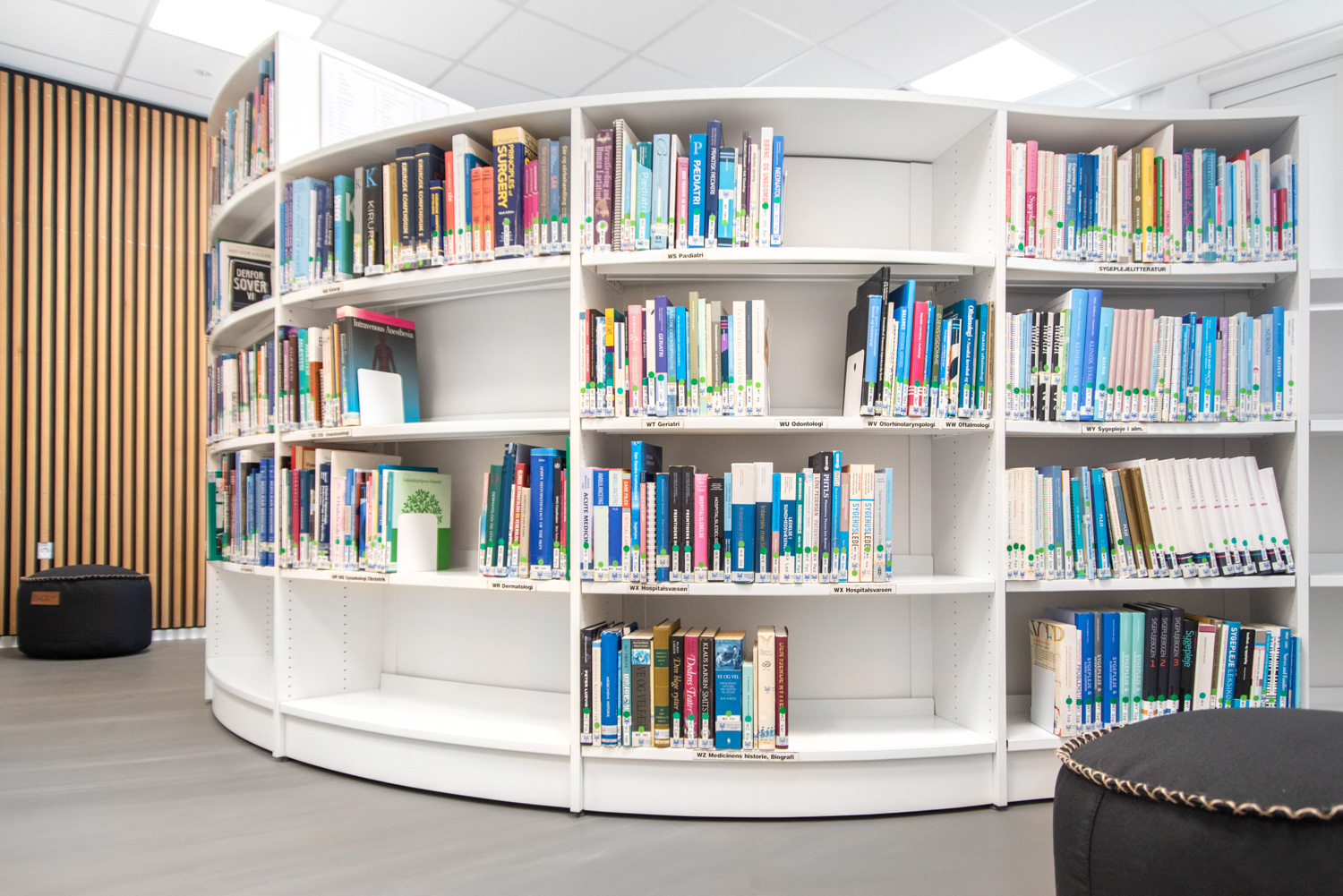 ”Like sitting outside” is what you are tempted to think when entering the library at Esbjerg Hospital, a combination of a library and a study area for the medical master’s degree.