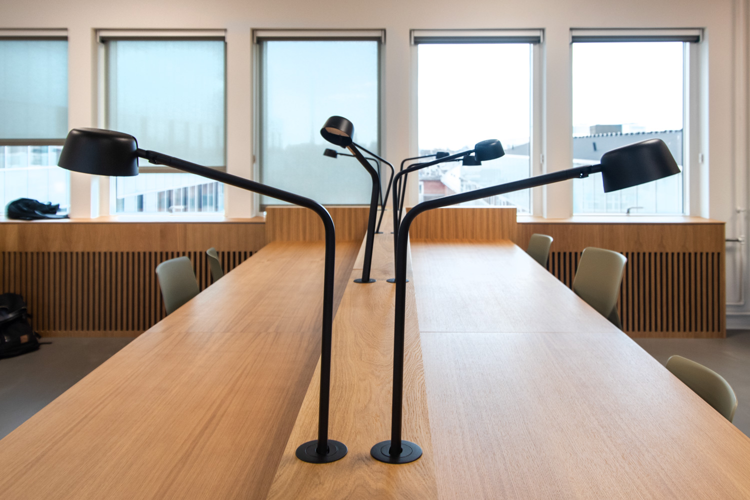 The partitioning walls between the tables allow room for peace and absorption. The students can work in a nice and comfortable environment where the warm materials and the natural light have a beautiful impact.