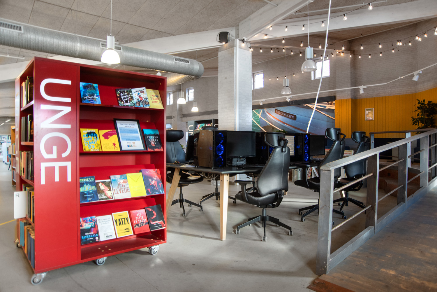 In 2016 we started working on a unique and exciting children and youth department in Frederikshavn Library. The goal was to create a cool place to hang out for teenagers and a playful area for the smaller children.