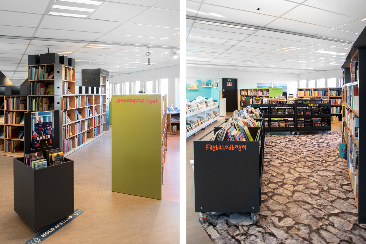 The interior project began in the autumn of 2017. Working together with architects from Lammhults Biblioteksdesign A/S, the library group of the children’s department began decorating and transforming the room into a narrative based on the municipality of Guldborgsund.