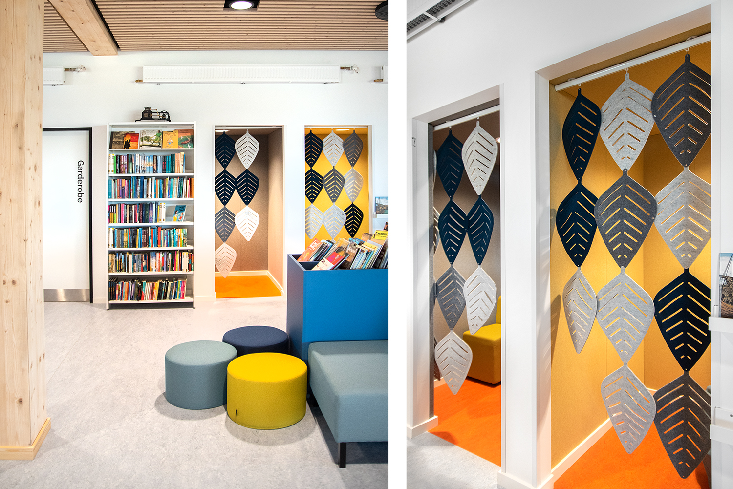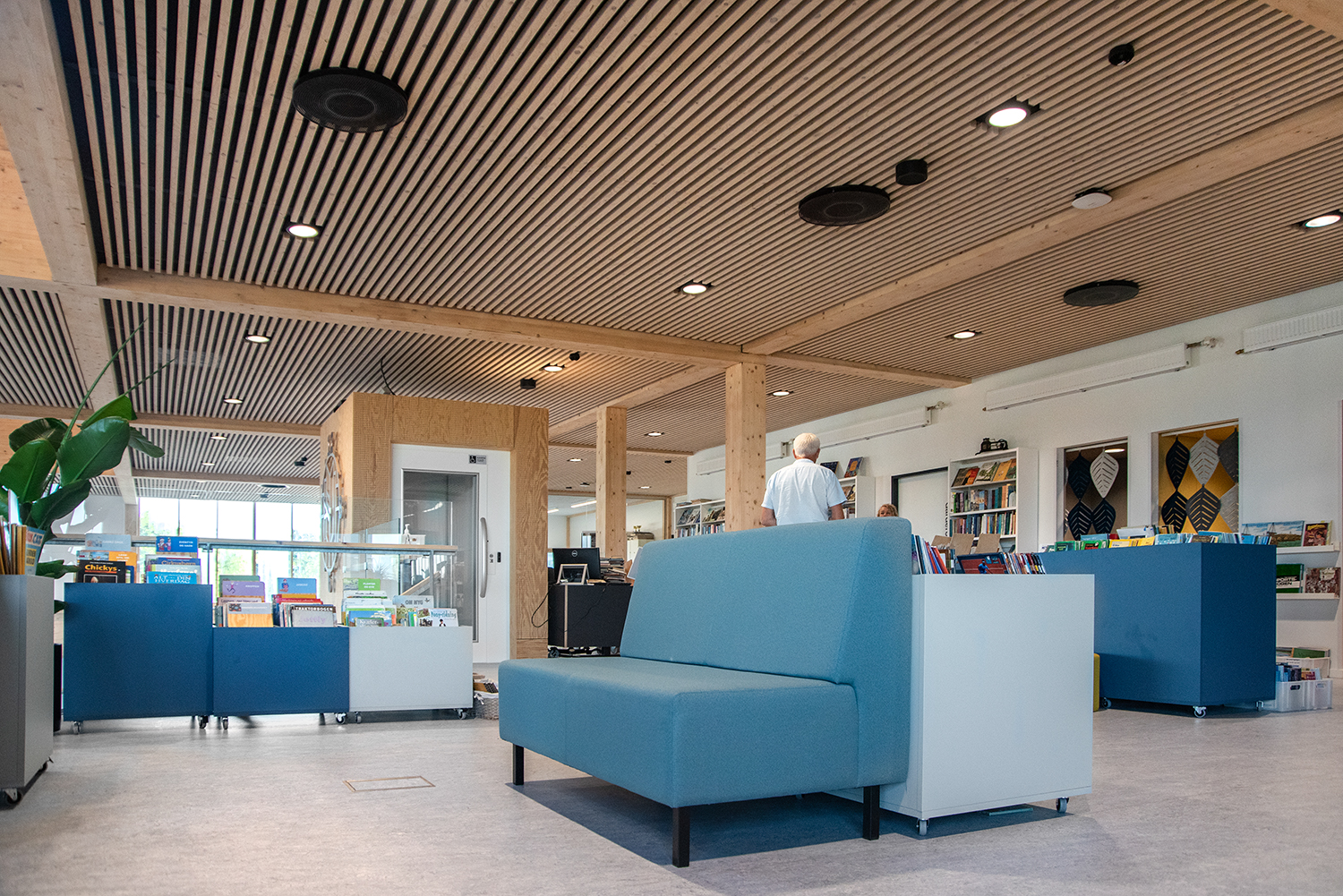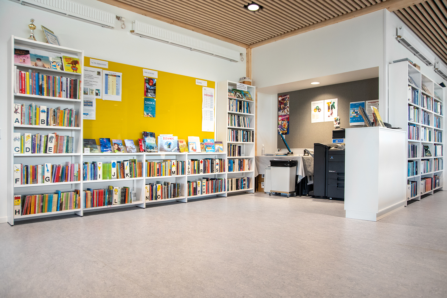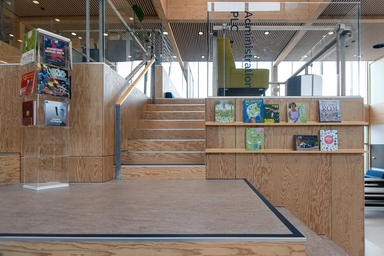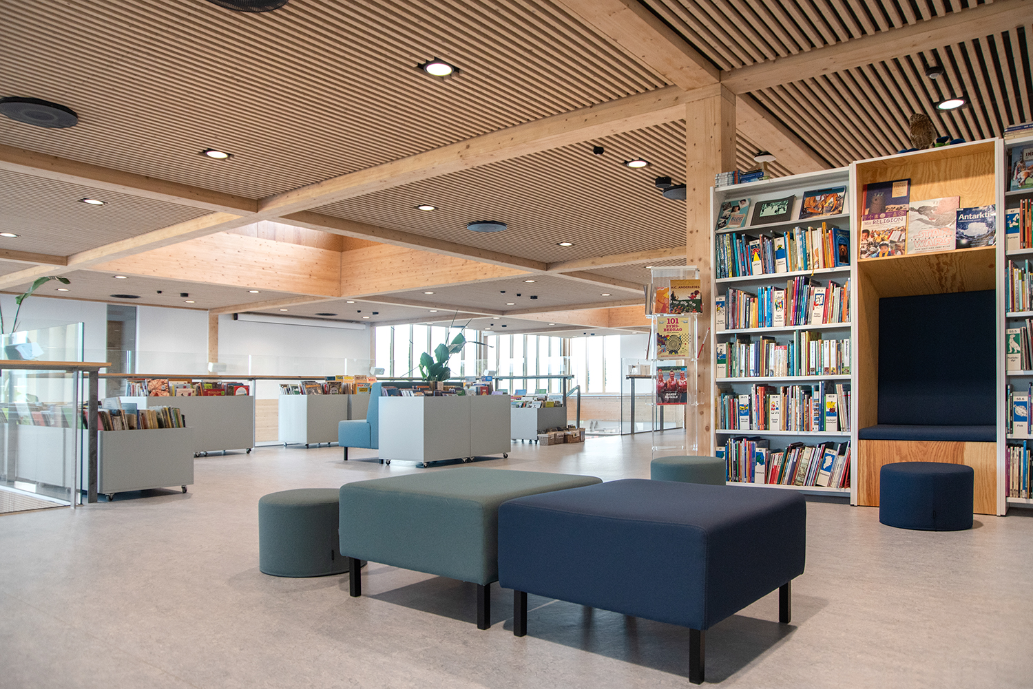 The school's visions of climate control and sustainability are supported by our Nordic Ecolabelled shelving and furniture made of FSC-certified wood. Likewise, all upholstery on sofas and pouffes is in recycled materials.