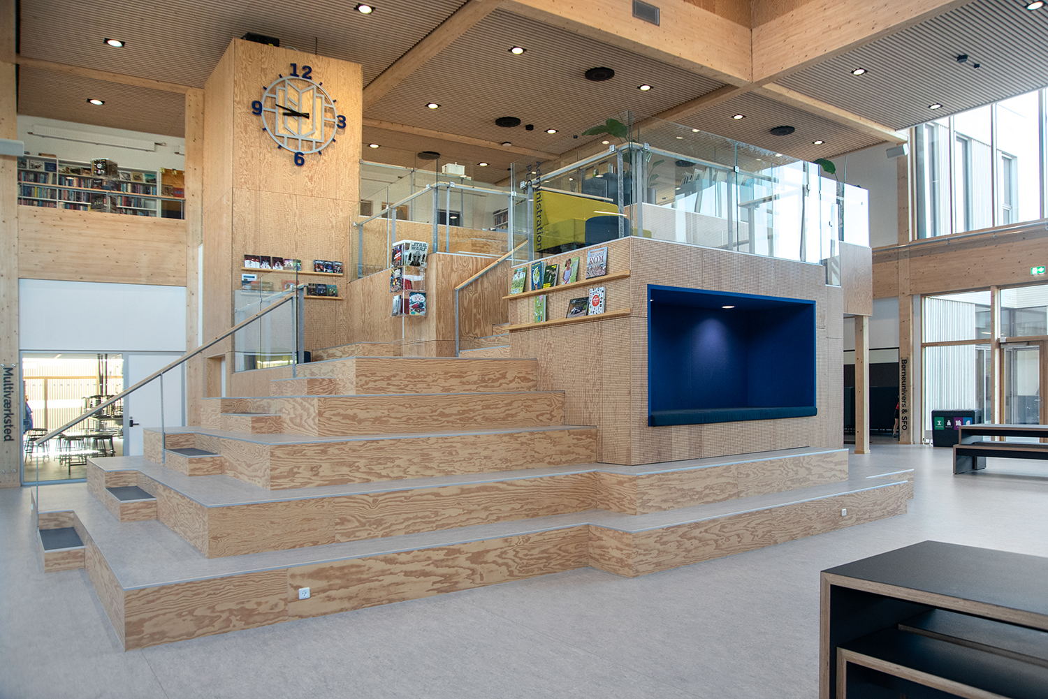 Lammhults Biblioteksdesign A/S designed and delivered the school's learning center (library), which points to a future where students' need for socialising, free space and immersion are the highest priority.