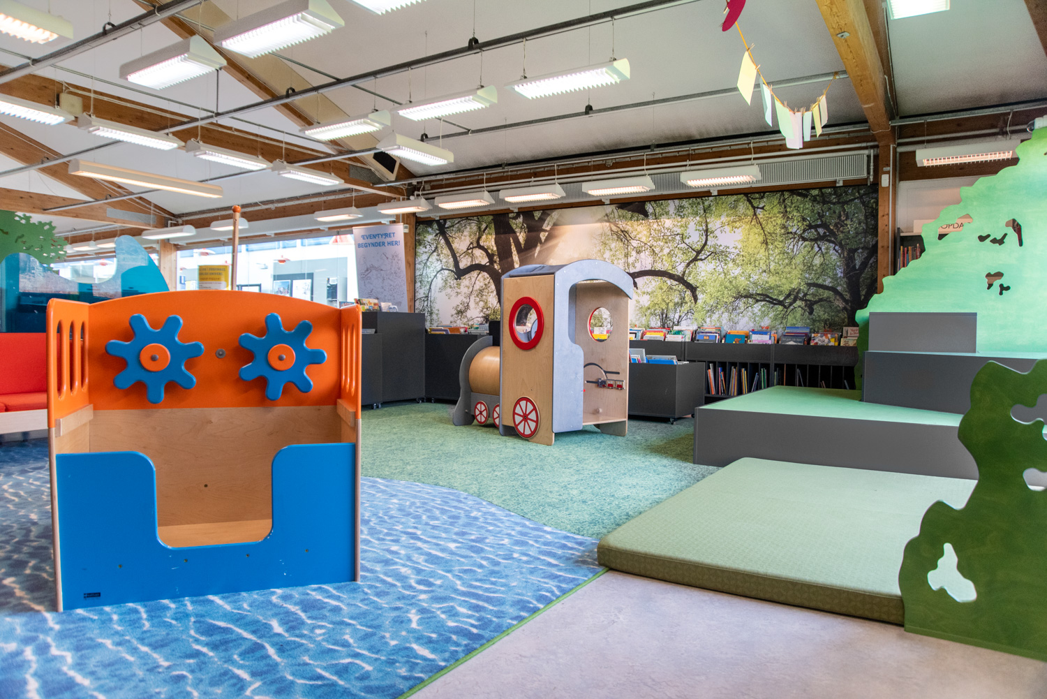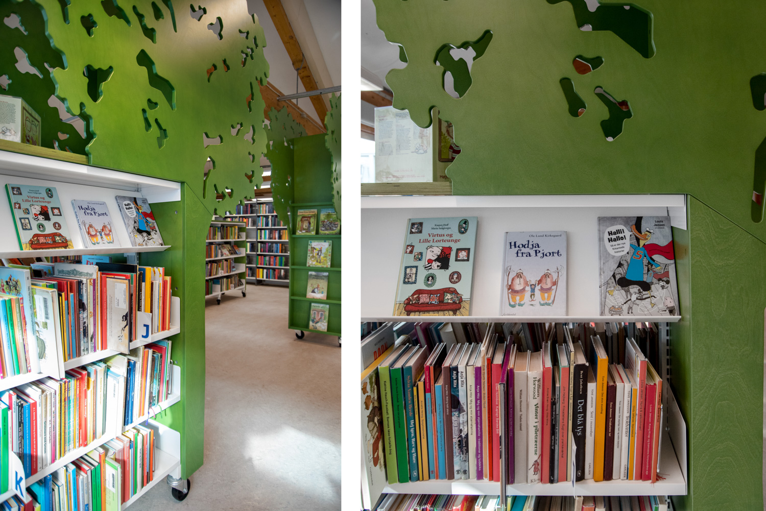 The renovated children’s department of Humlebæk library was finished in 2021. The purpose was to add more accommodation and include nature elements in the library.