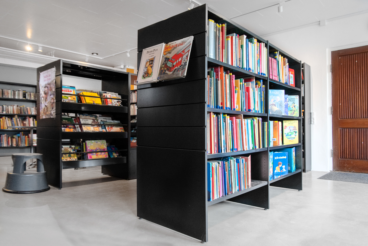 This 60 m2 small school library is located in the basement at Sankt Knud Lavard School in Lyngby. Almost 200 pupils attend the school, and the library plays a central part in creating a social gathering place, that can be used for several activities.