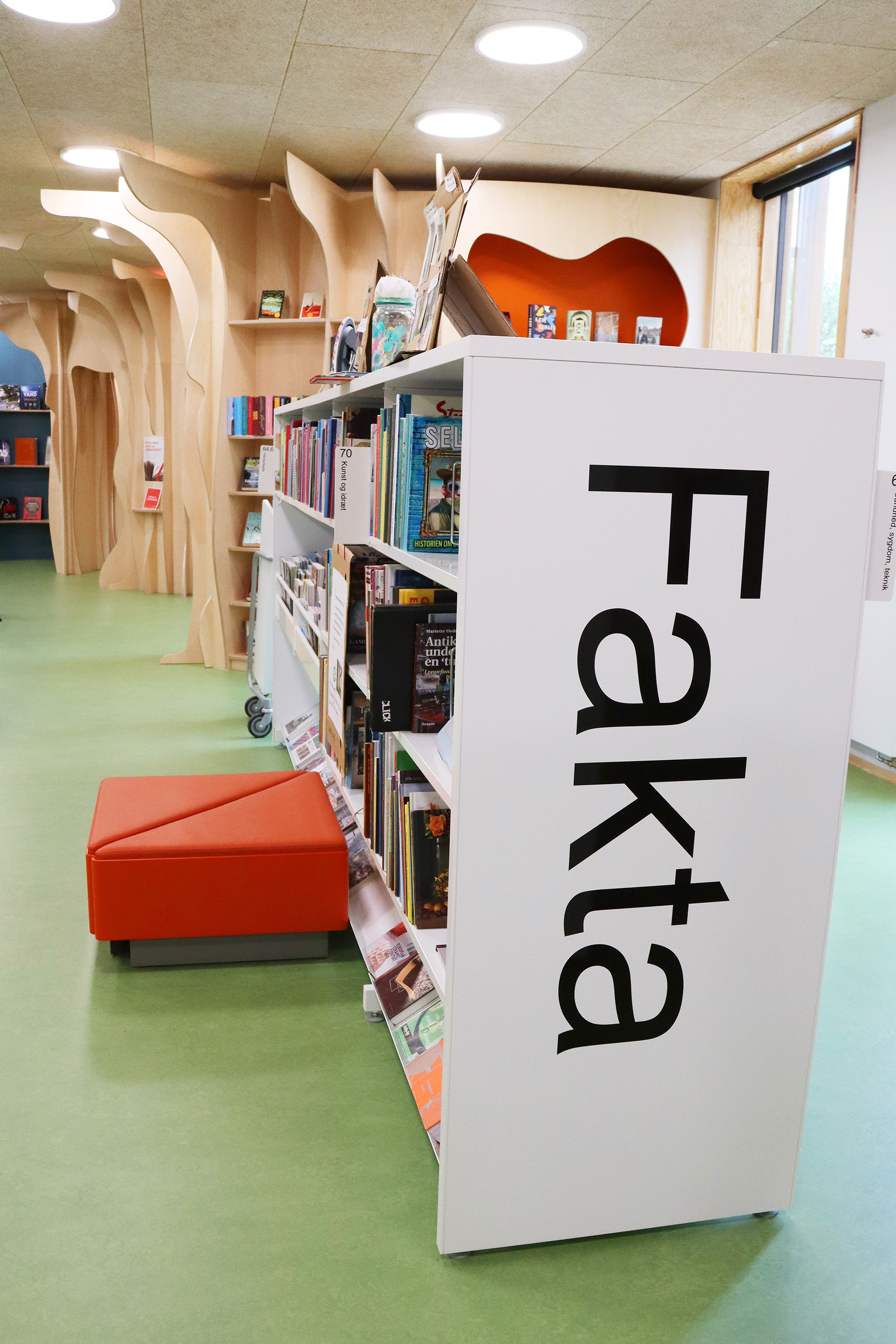 The theme of the library – and the culture house overall – is the forest and nature which is expressed through sustainable materials as well as the products and sculptures that are chosen for the building. The building also consists of a school, day-care, youth club, sports, and citizen service, which bring together many cultural experiences and offering under the same roof.
