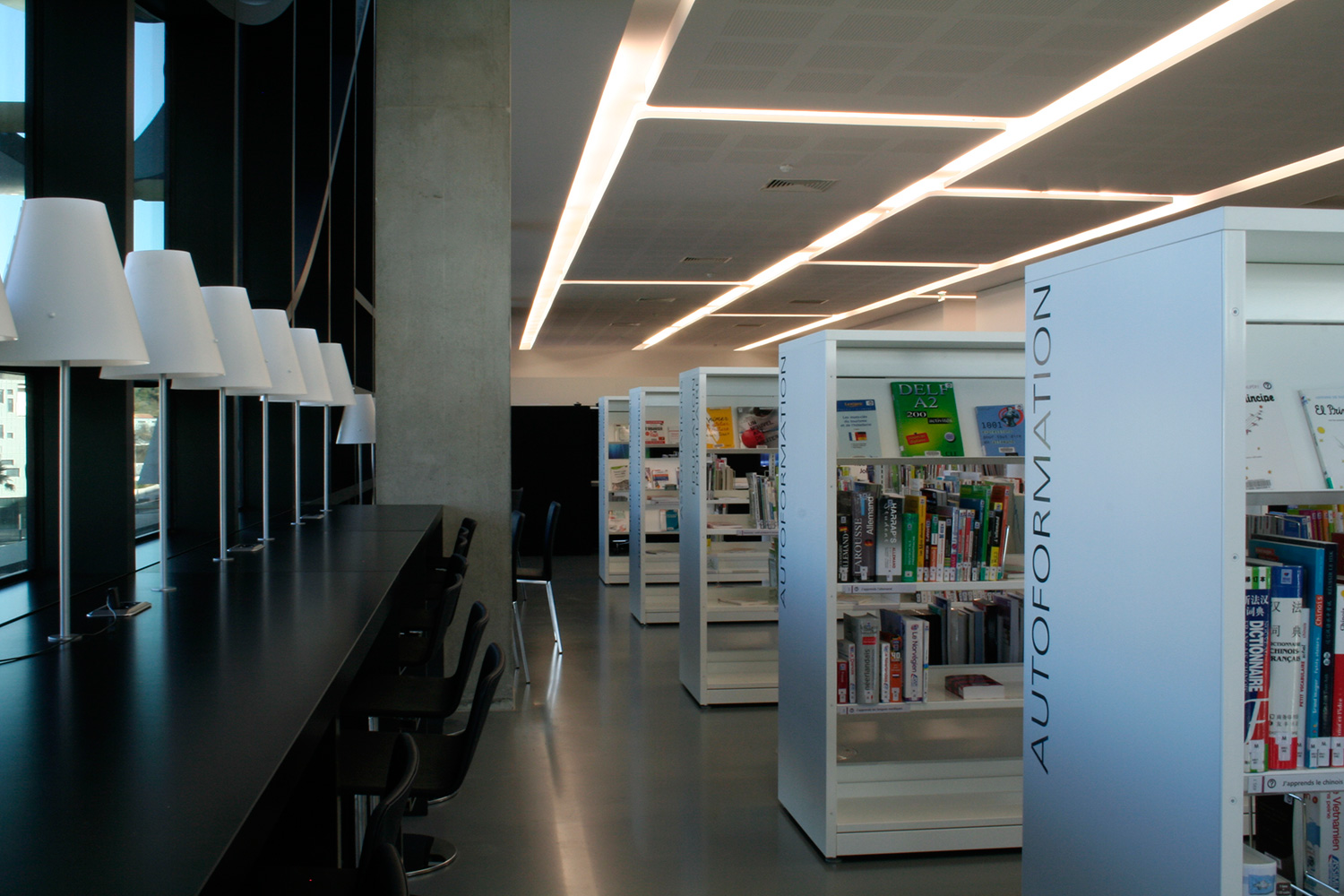 The new regional library in Montpellier is one of a kind in several ways. It only takes a glimpse to see that the architecture is beyond the ordinary. The building is the shape of a horizontal tree and is designed by award-winning architect Zaha Hadid. The library is also one of two county libraries in France open to the public. Normally, the county libraries only serve other libraries in the county.