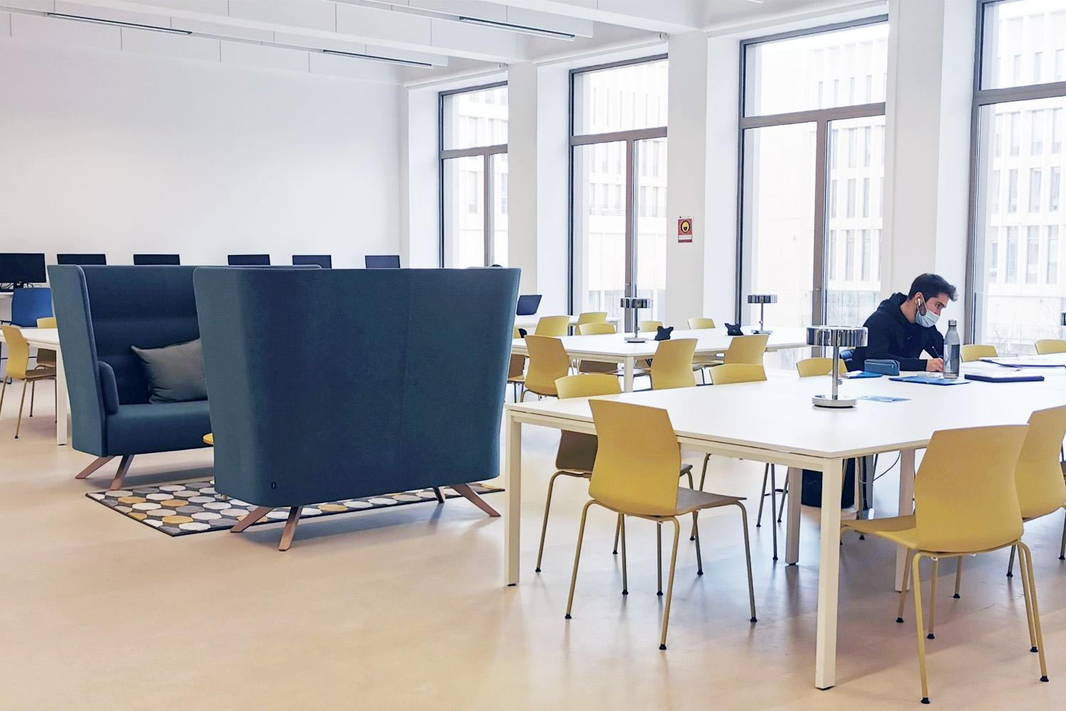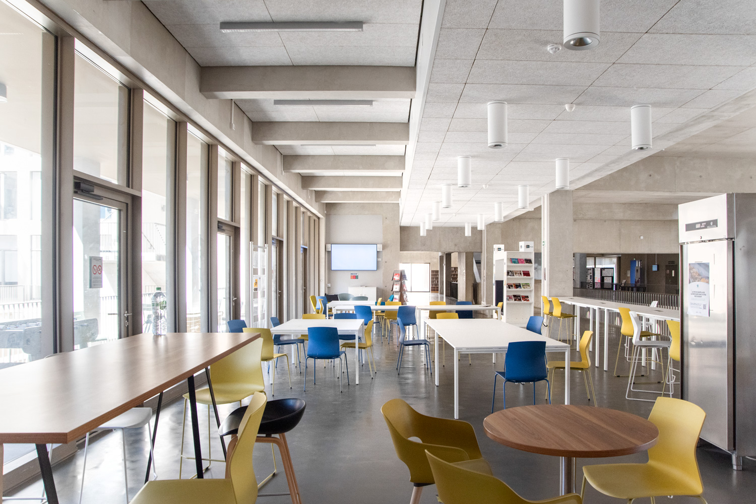 The library / Documentary and Digital Resource Centre (CRDN) has therefore been completely redesigned in order to be able to offer different areas to students, teachers and staff. Designed as a "third place" with spacious areas, the CRDN offers its users many services and documentary resources.