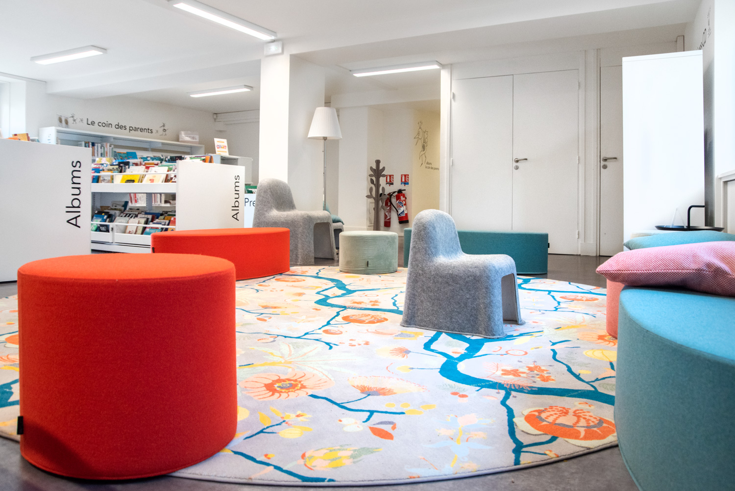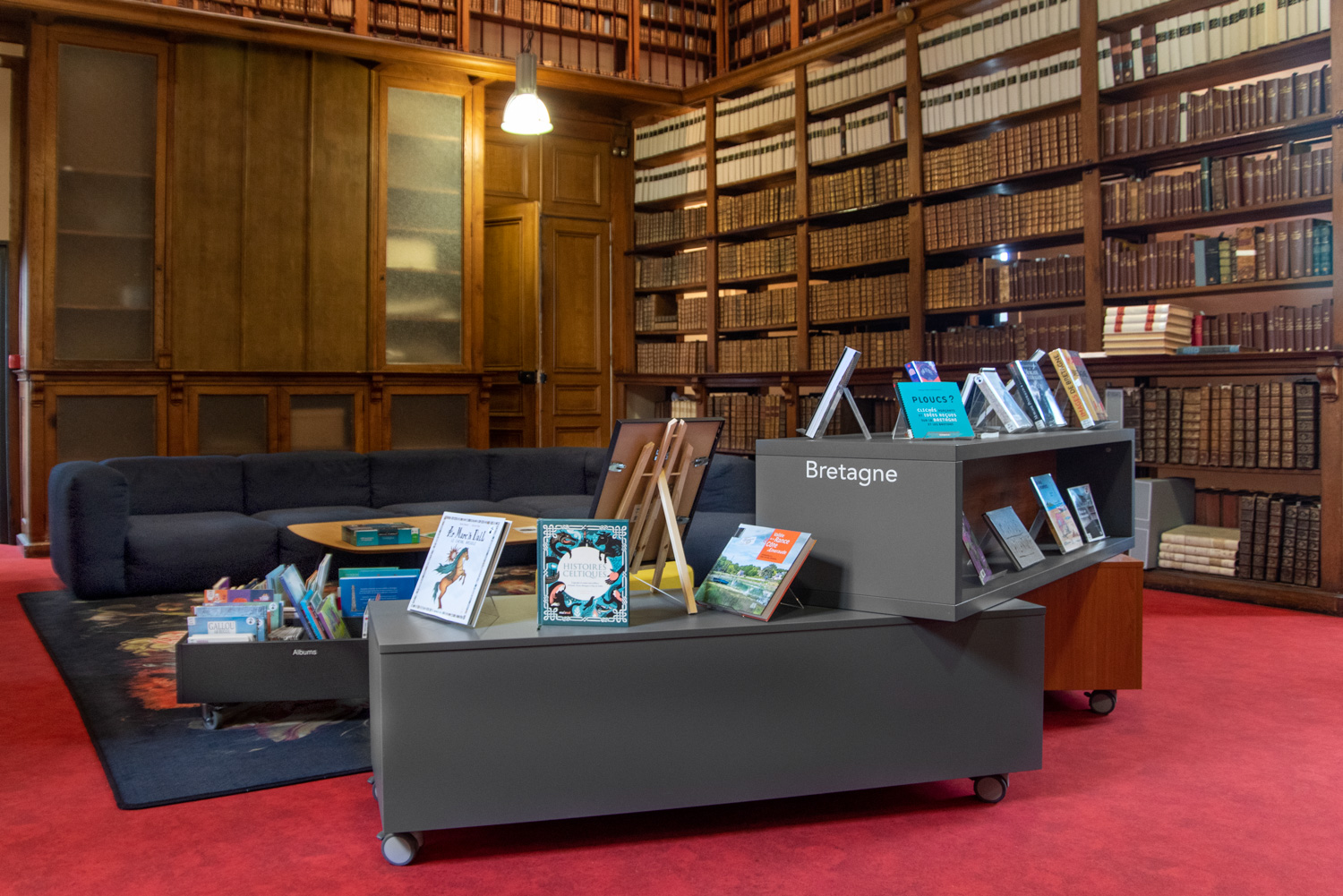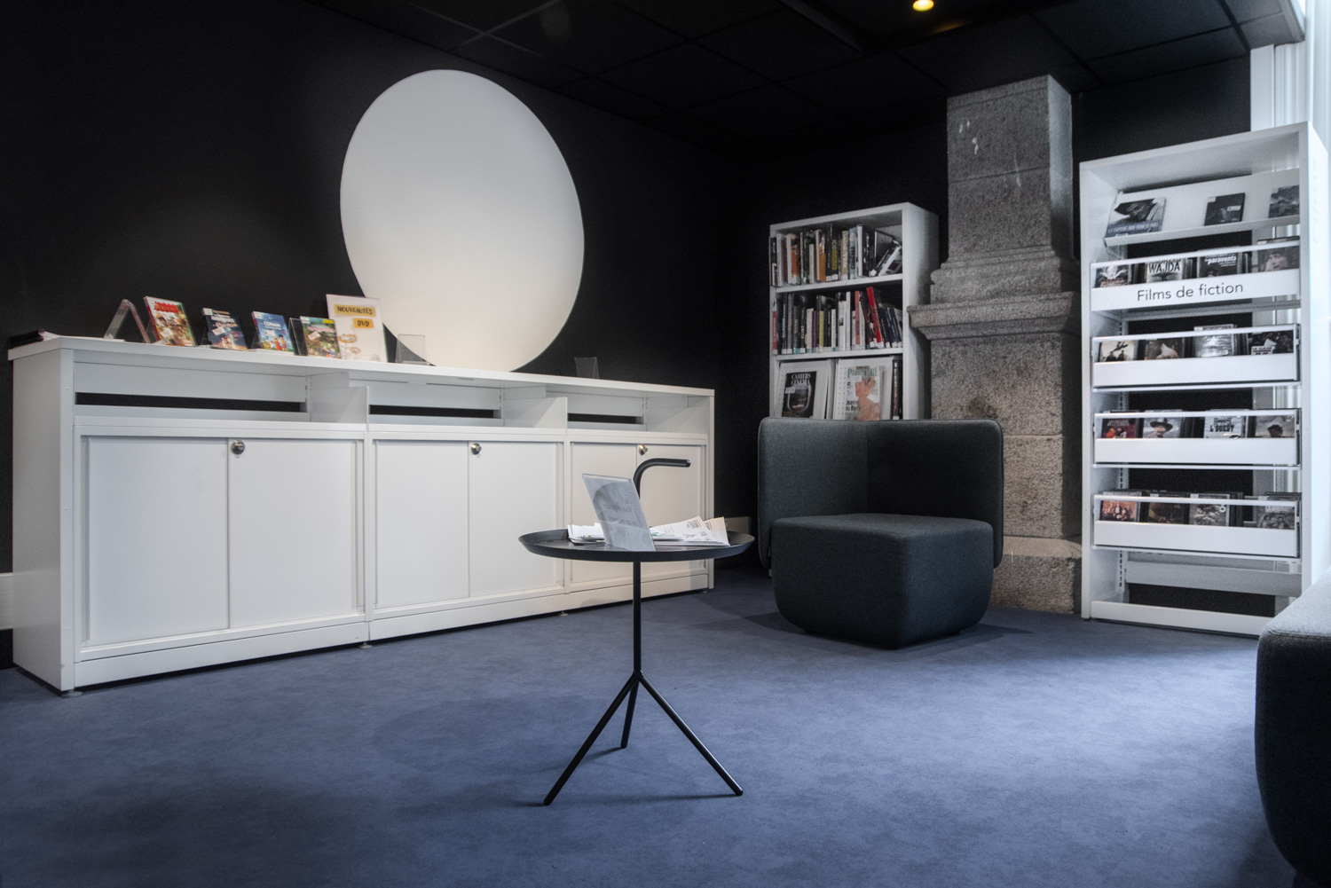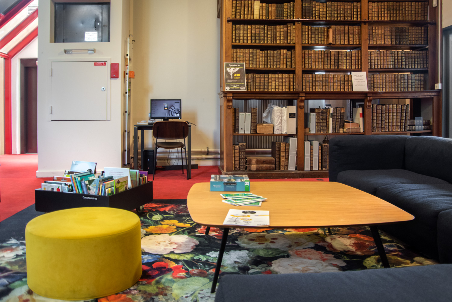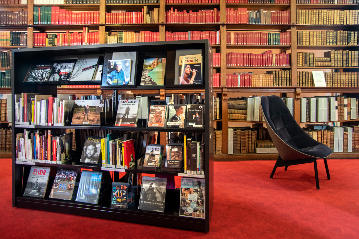 With 55.000 books available for free access (on 3 levels), the library offers more space for circulation and a more convivial atmosphere. Furniture from the 60/30 Classic London range is used throughout the building, with a curved shelving system on the ground floor. A visit to the heritage room on the 2nd floor is a must: black shelving on a red floor and magnificent old full-height oak shelving.