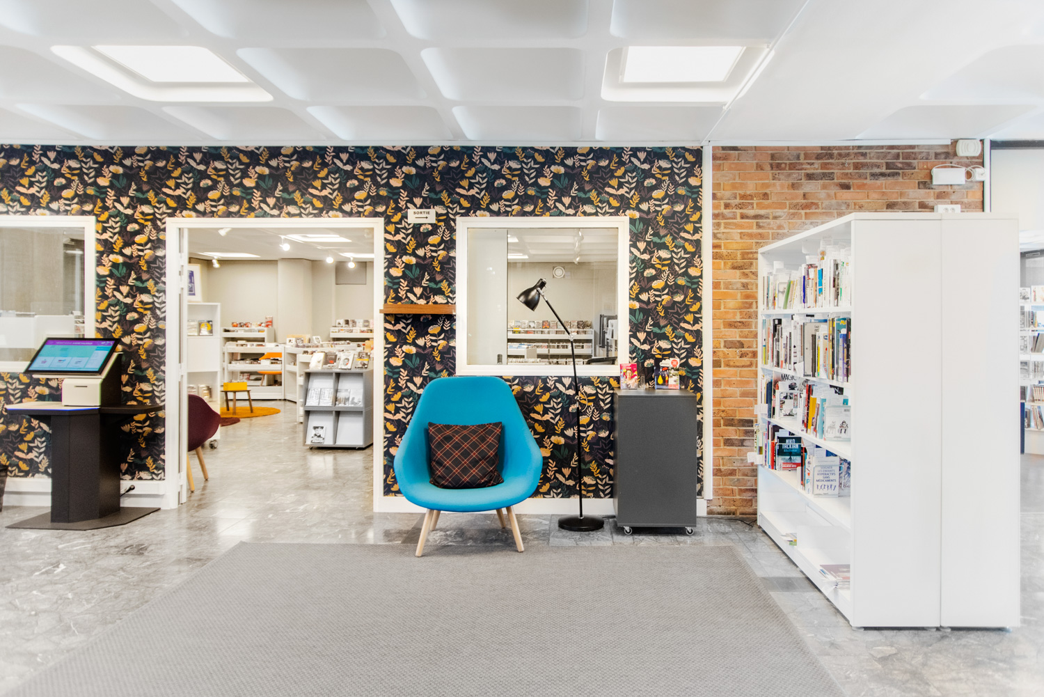 This modernisation made it possible to rethink the distribution of space as regard to new uses and the behaviour of the public. The furniture on the three levels, positioned around a central staircase, is predominantly white with a strong colour that personalizes each level.