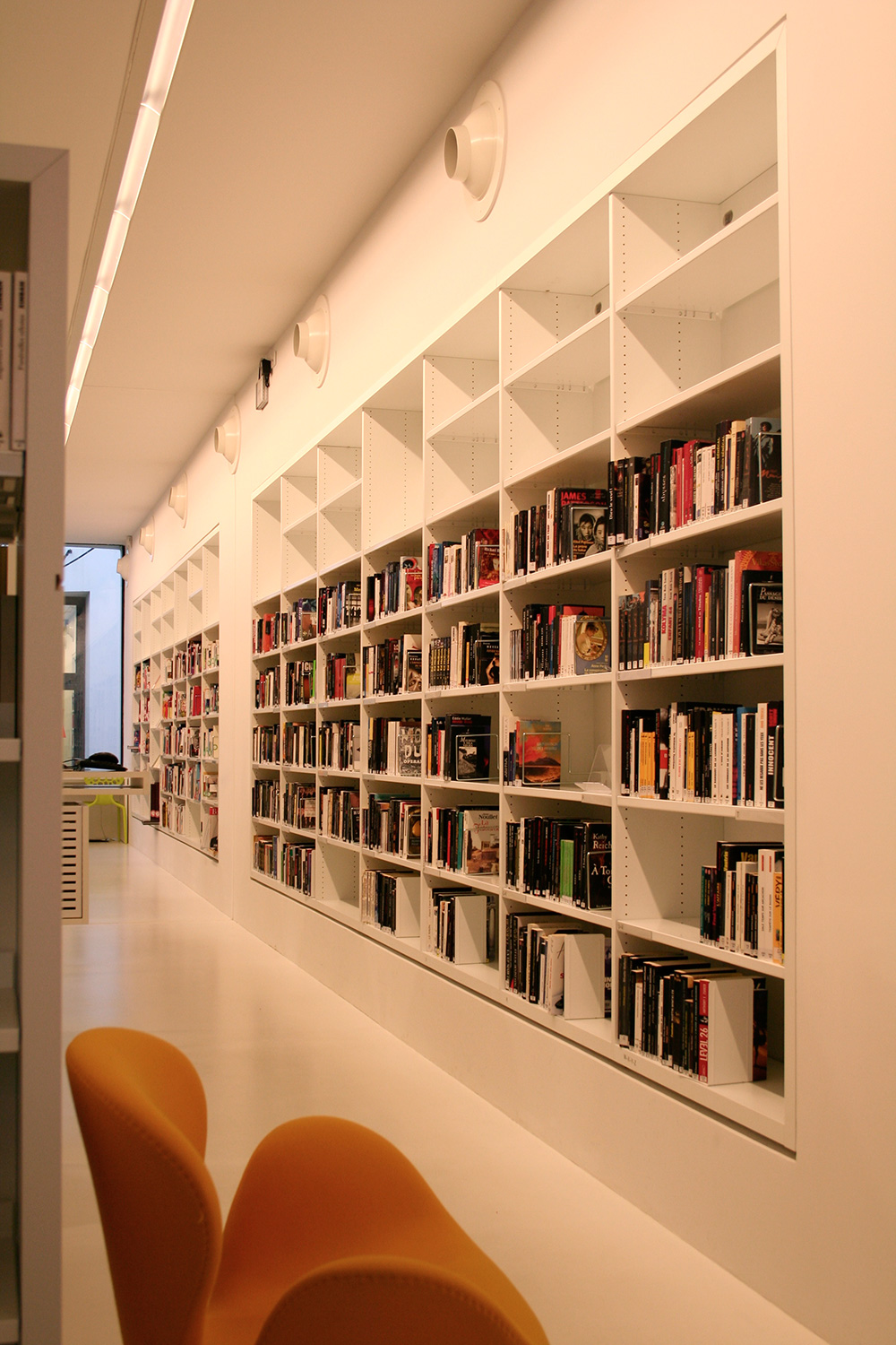In certain areas the shelving was adapted to fit perfectly inside open alcoves, integrating air-condition and electrical installations.