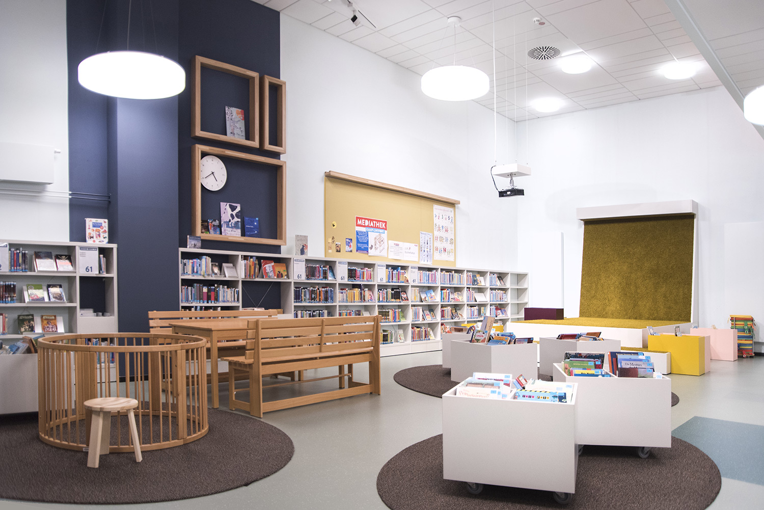 The Mediathek Kamp – Lintfort was designed by the famous german UKW Architects and was realized in cooperation with a specialized company which was delivering a huge share of the special solutions. A visit in that library is a fantastc experience