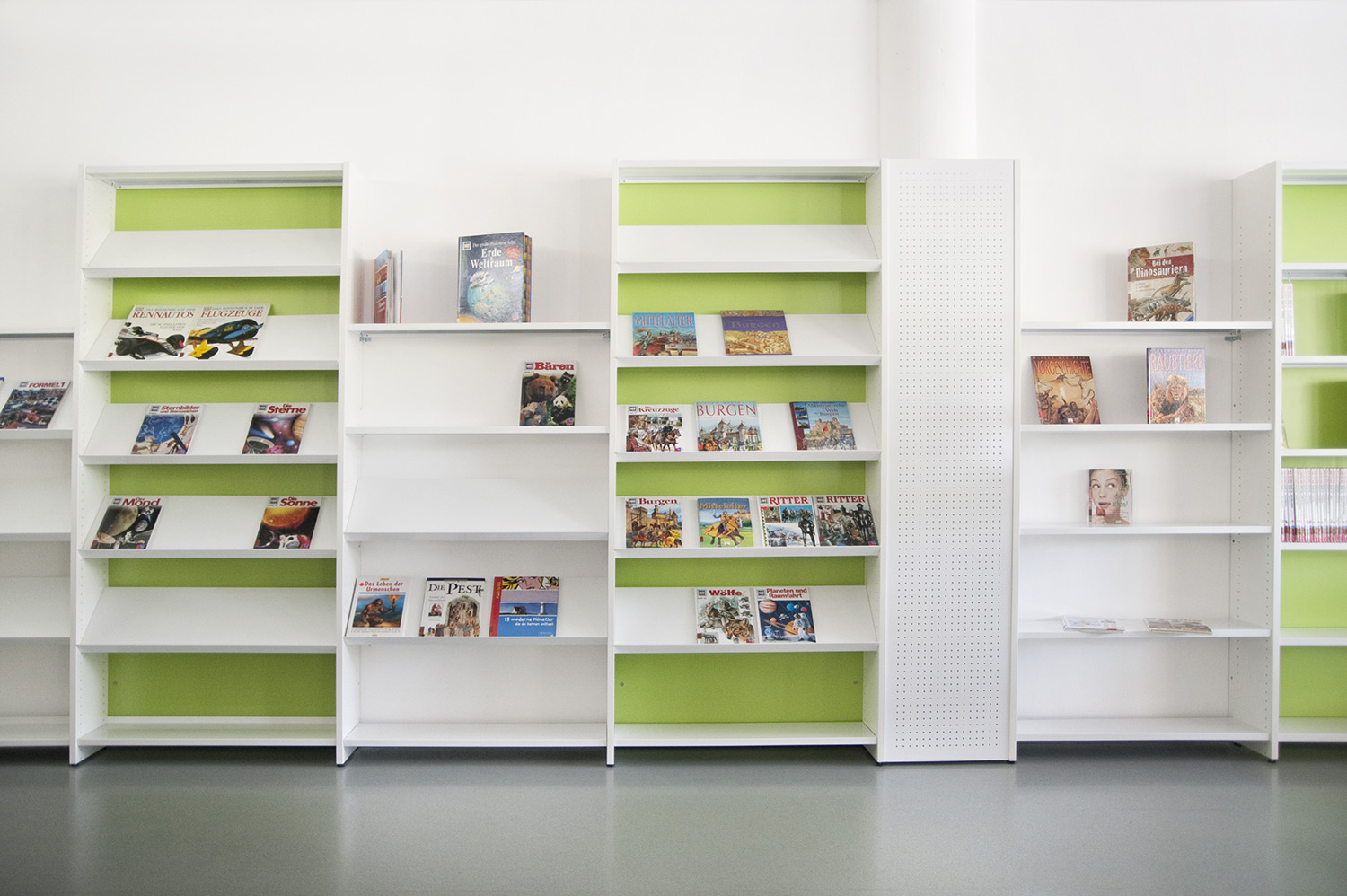 Located on the outskirts of the beautiful city district Edigheim in Ludwigshafen, a creative and progressive integrated comprehensive school has taken form. Its modern and multifunctional library is filled with unconventional ideas. The green and white interior has a natural and fresh atmosphere and correlates with the garden in the adjacent atrium.
