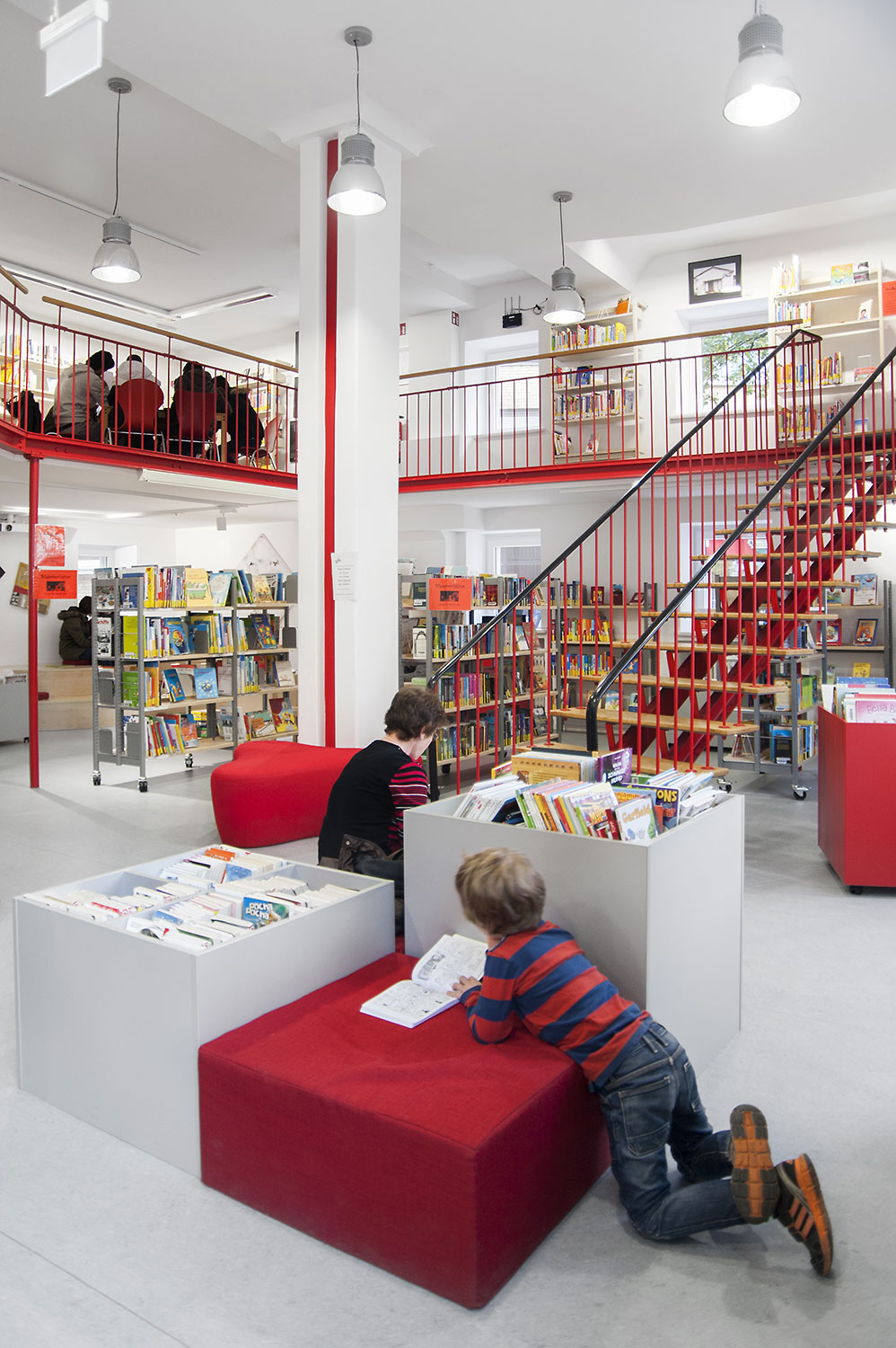 There is a green reading corner, a creative café and presentation displays for creations and exhibitions of local artists.