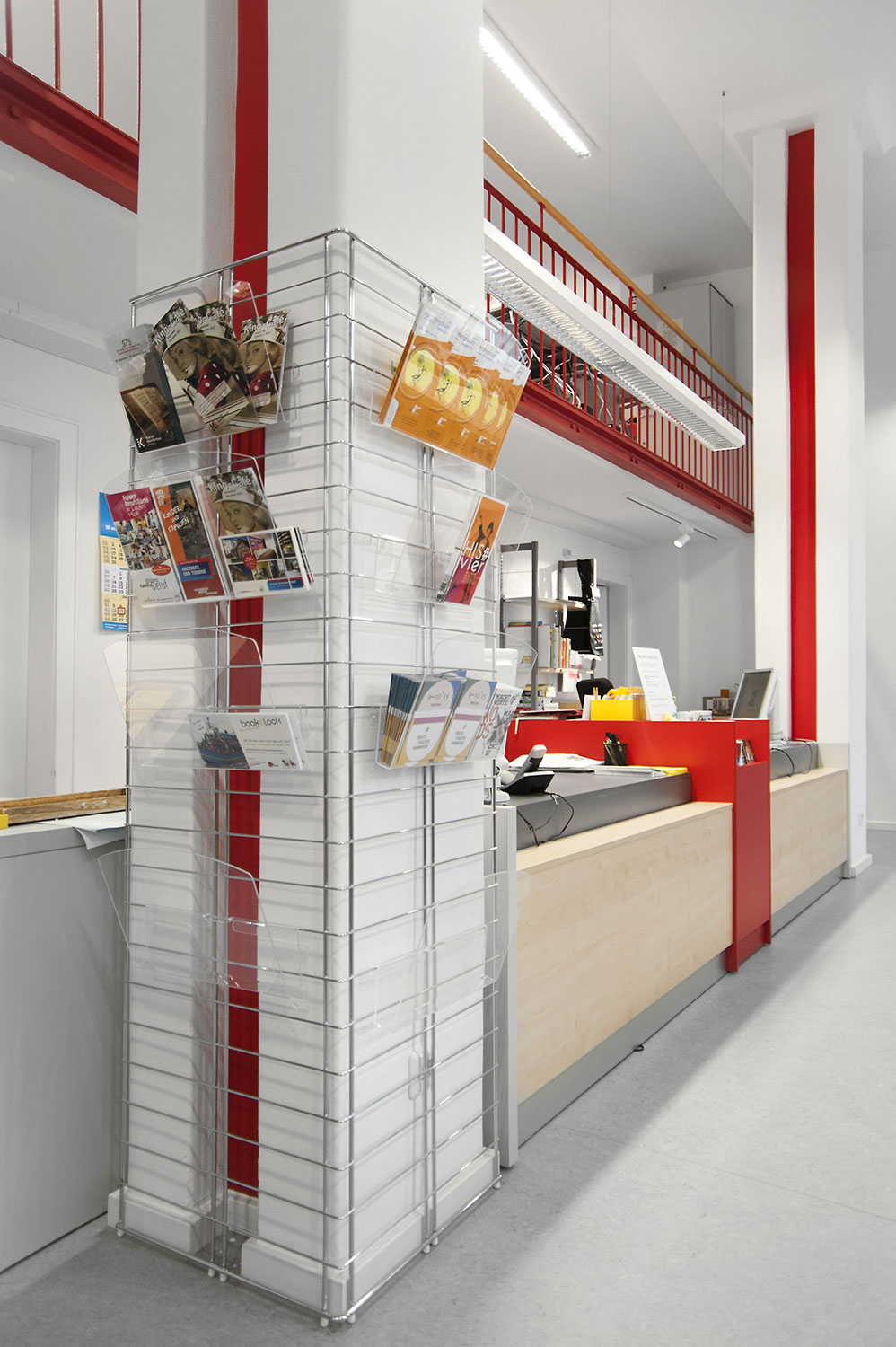 The library collection now includes 25,000 media, many of which are already in a digital form. Daily newspapers, free internet and board games invite the user to stay in a cozy atmosphere.