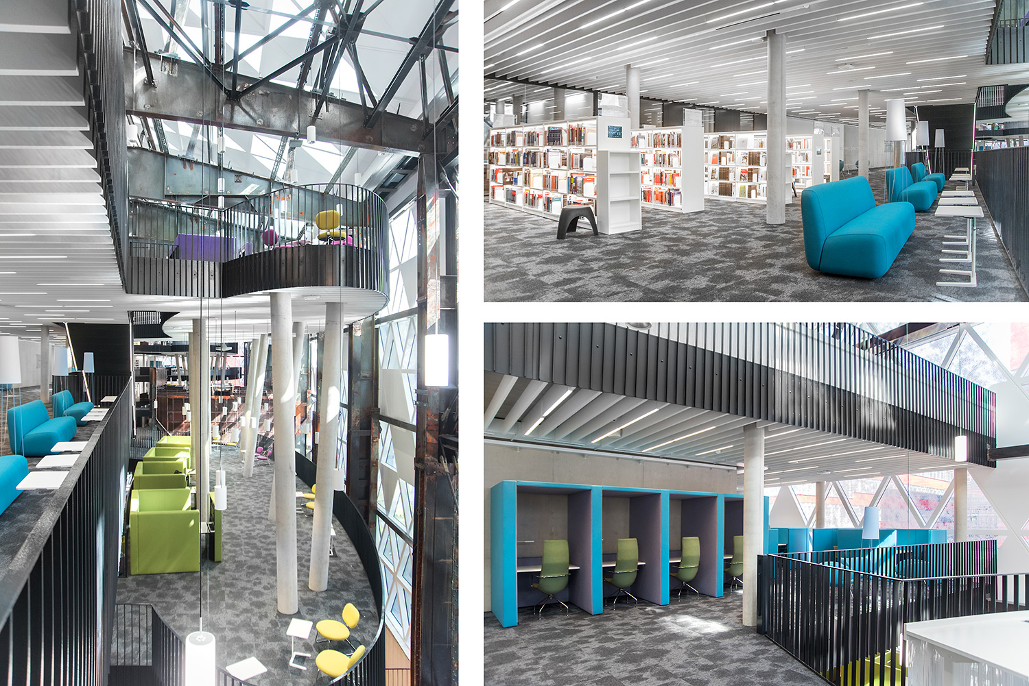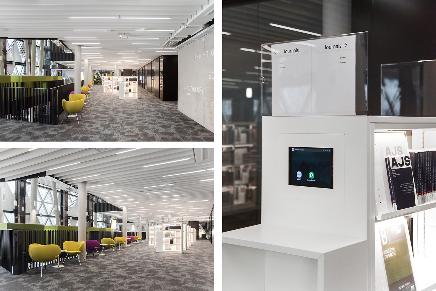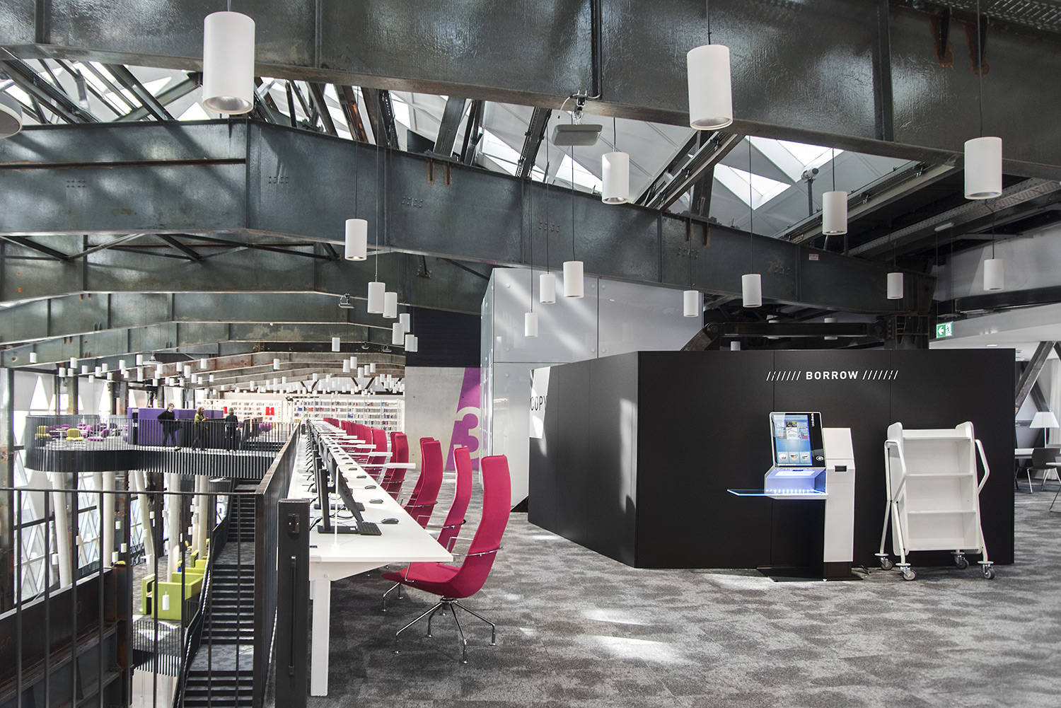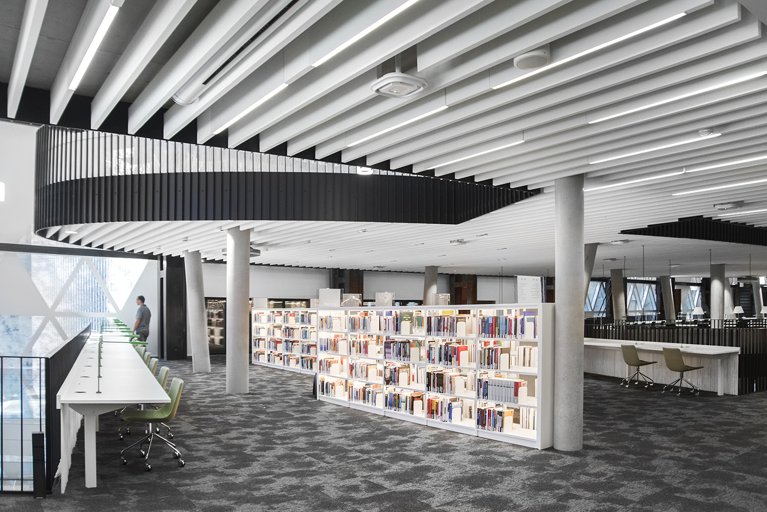With its clear design and practical all day usability our Uniflex Shelving System with integrated LED lighting provides 10.7 km of shelf capacity spread over 5 floors.