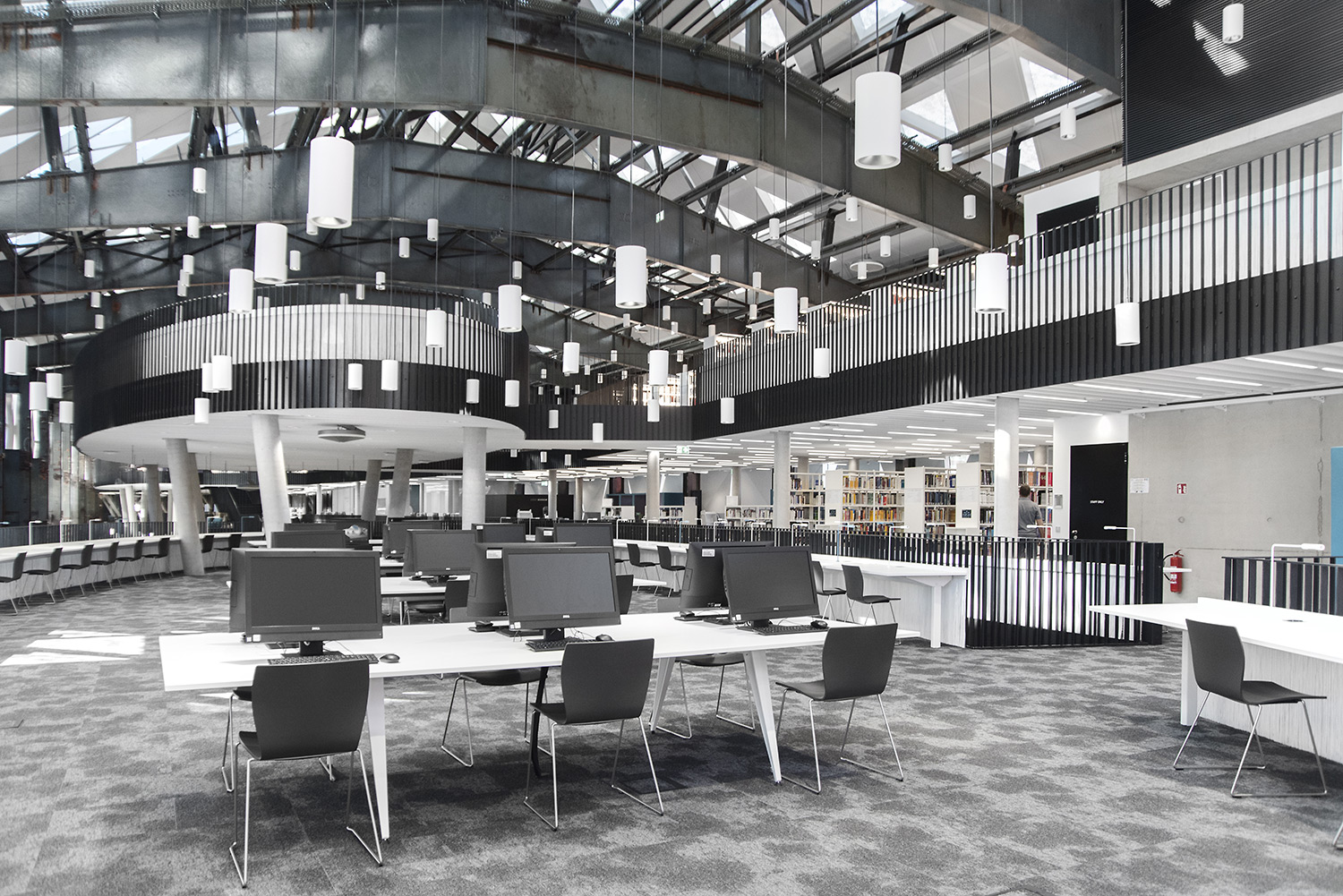 The outstanding architecture and high quality furniture offer an attractive and flexible framework that makes the scientific library an enjoyable place to meet, work and share knowledge.