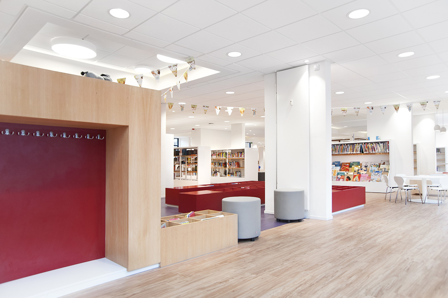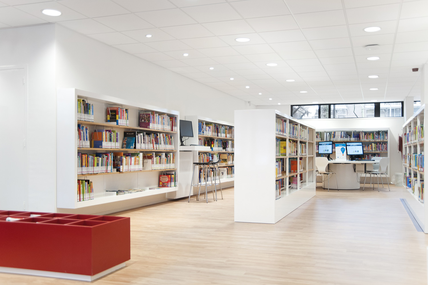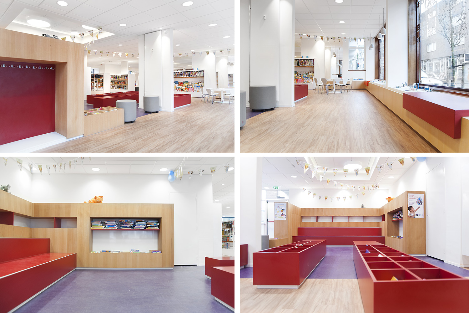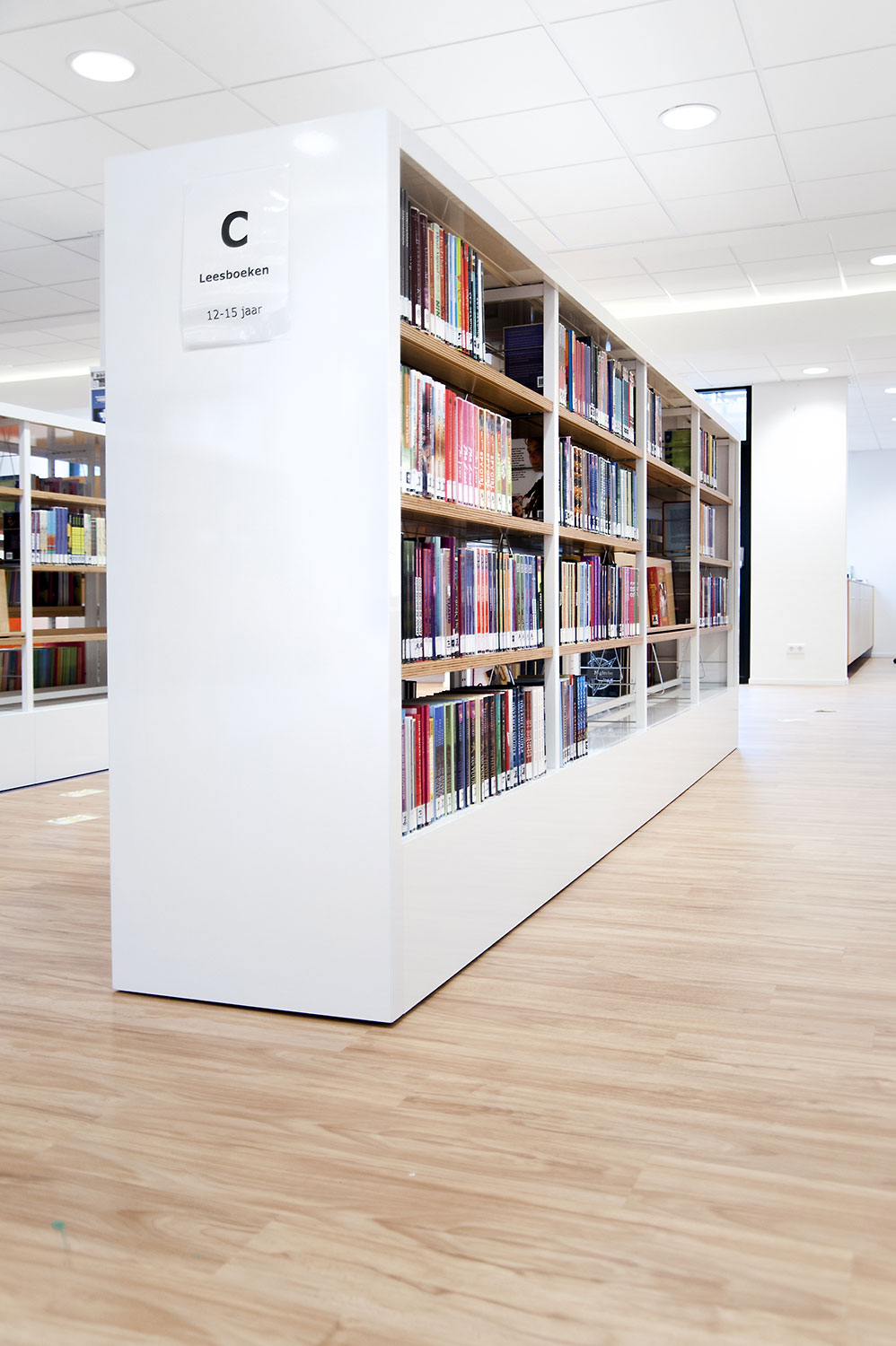 The design of the library has been made by the archtiects +31ARCHITECTS and Millie’s. The interior is spacious and light. It is a combination of custom furniture and standard Uniflex library shelving. But even the library shelving is used in a way so that it almost looks like custom furniture.