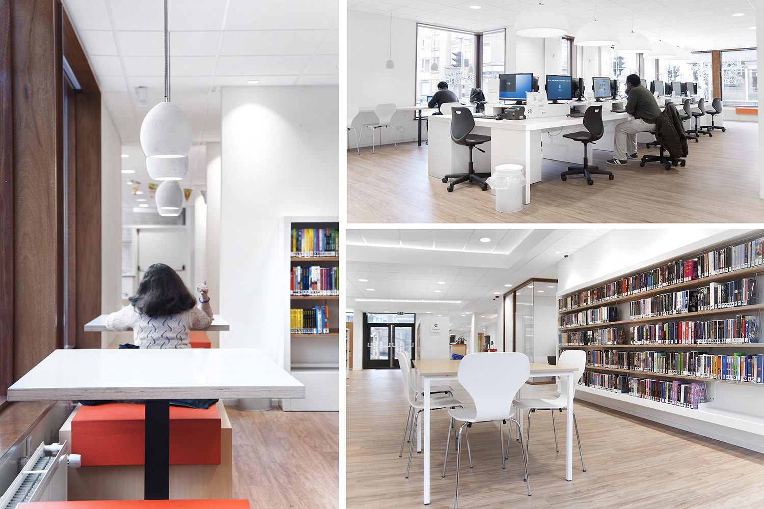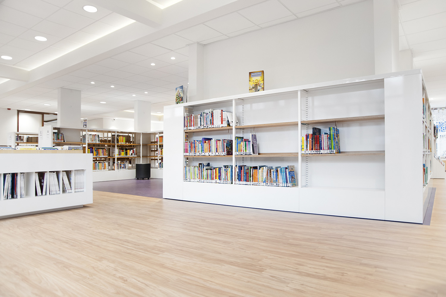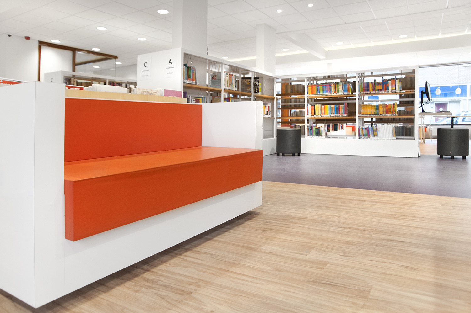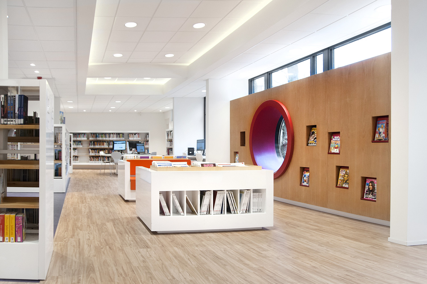 The design of the library has been made by the archtiects +31ARCHITECTS and Millie’s. The interior is spacious and light. It is a combination of custom furniture and standard Uniflex library shelving. But even the library shelving is used in a way so that it almost looks like custom furniture.