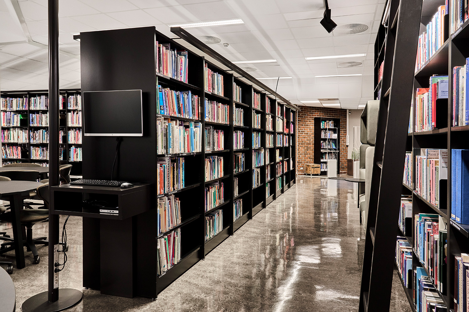 After several months of intensive renovation work, the library reopened in November 2020 in modern and open spaces, adapted to an active and flexible study environment. There is a particular emphasis on social zones, group workspaces and special rooms. BS Eurobib in Norway has been responsible for supplying the shelving systems, which in 2022 were supplemented with even more furniture and shelves with tiltable magazine racks with space for storing magazines.