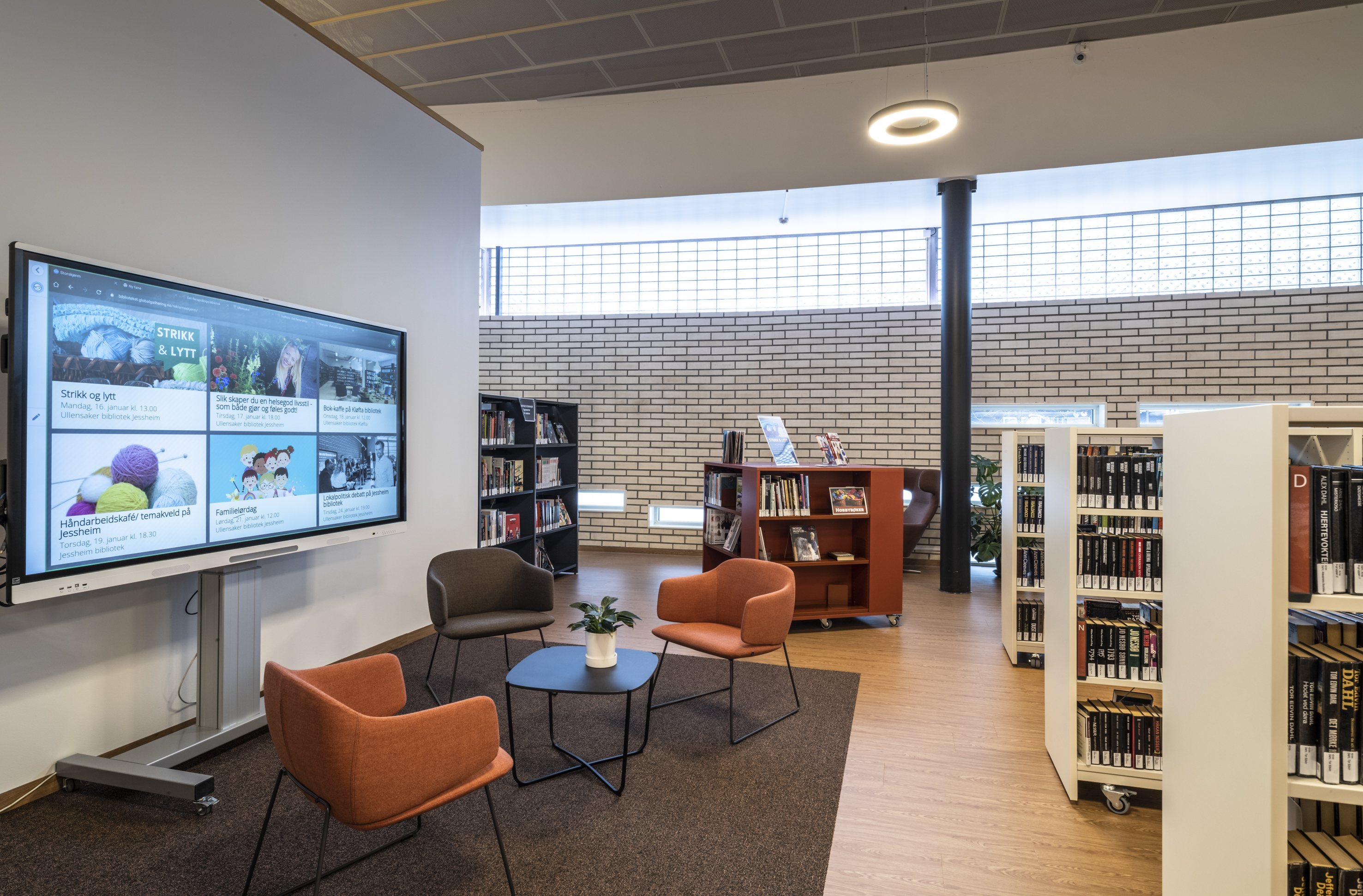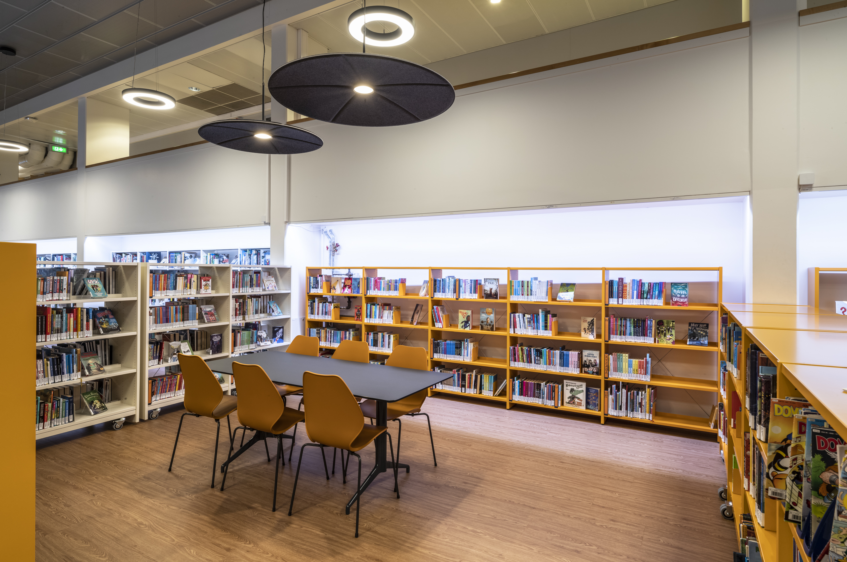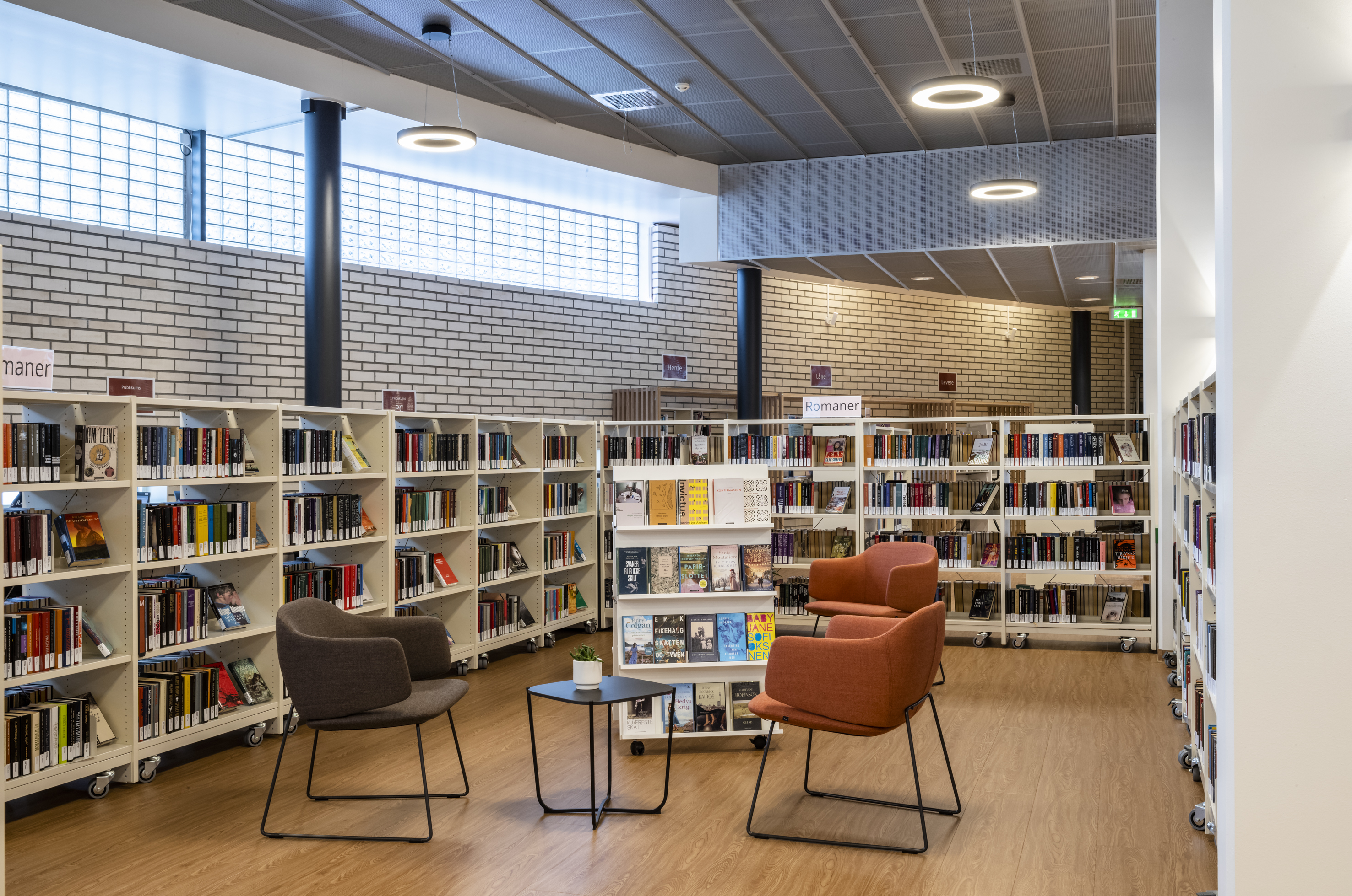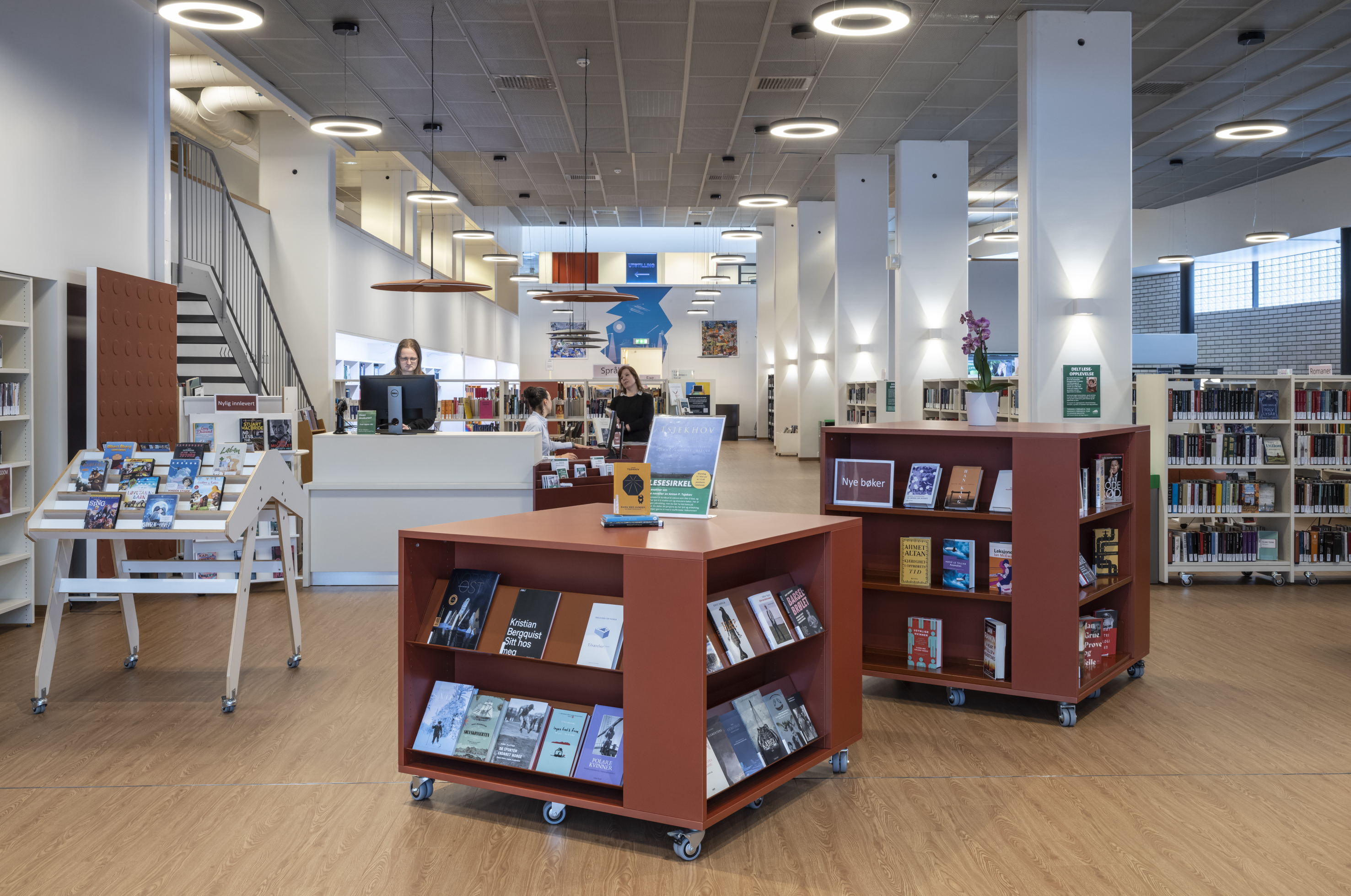 The library in Ullensaker Municipality is located in the town of Jessheim. On 5th January 2023, it was officially reopened after extensive renovation, where all the furniture and shelving systems have been renewed and coloured in shades that harmonize with the basic elements of the recycled premises.