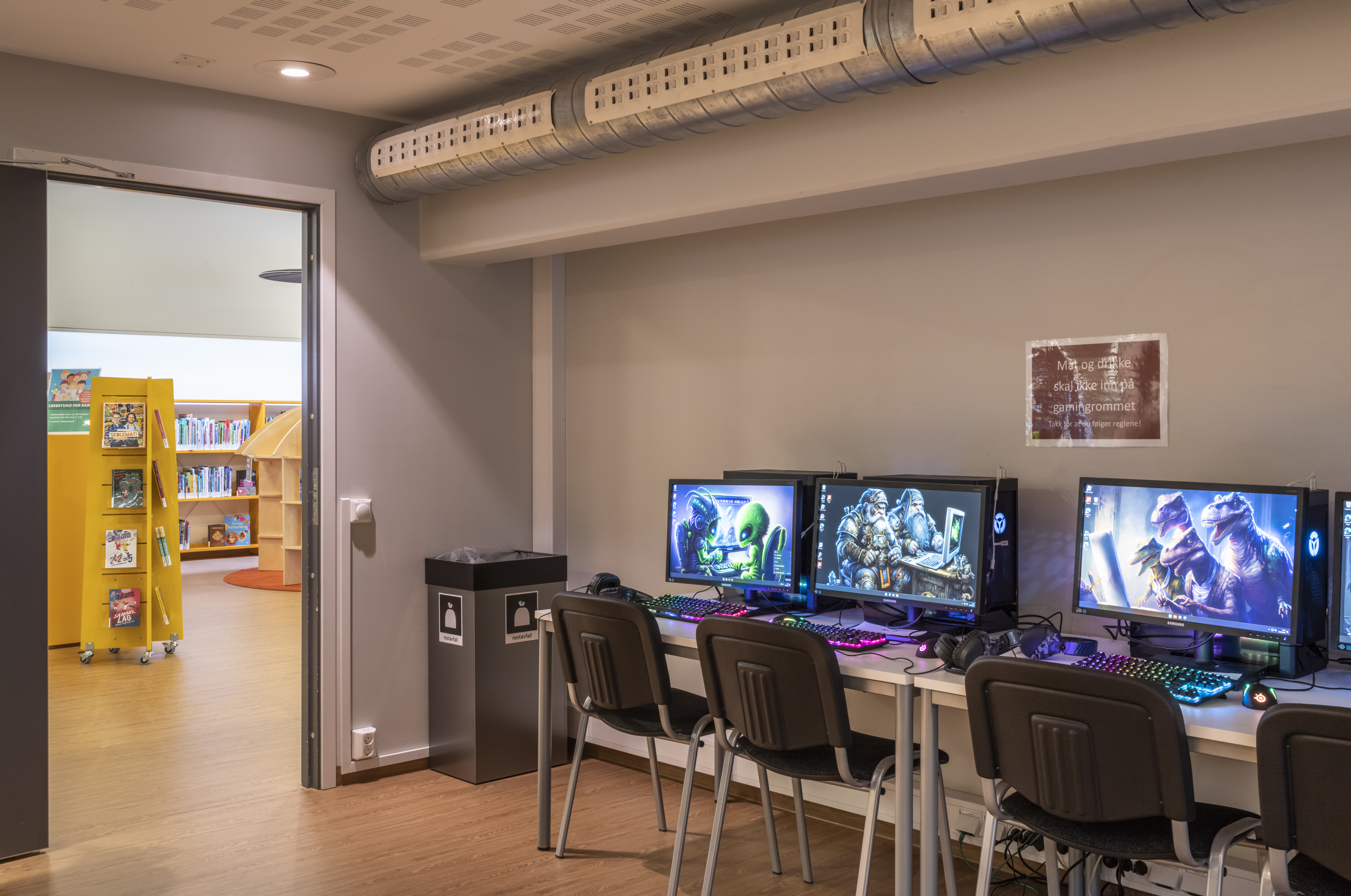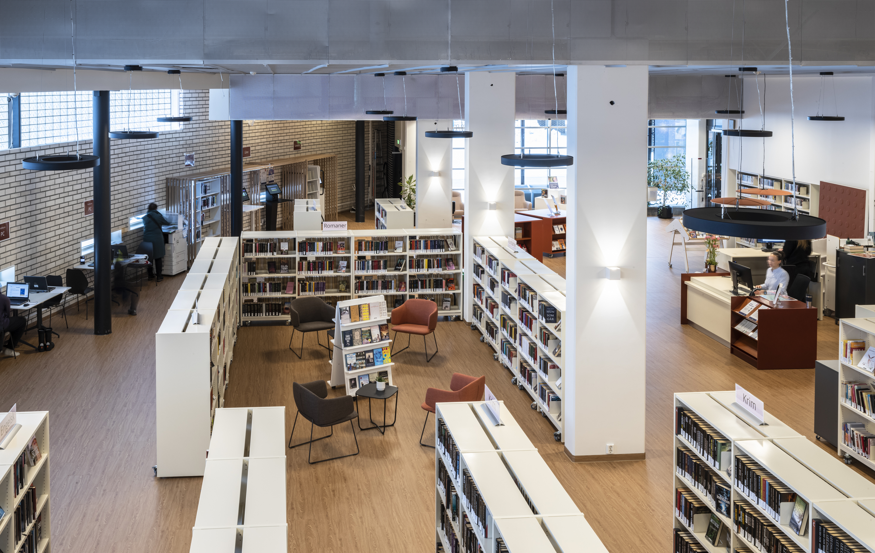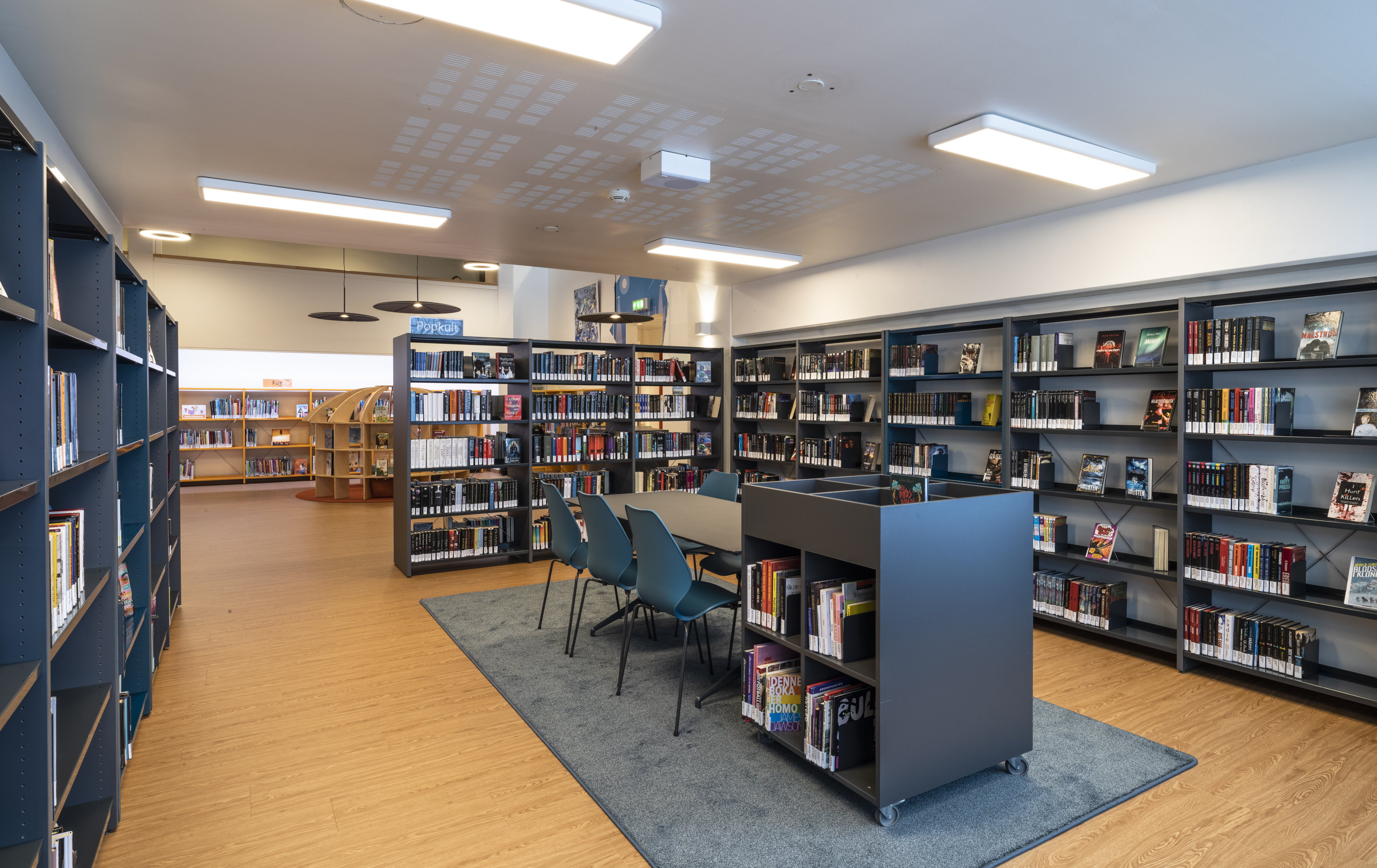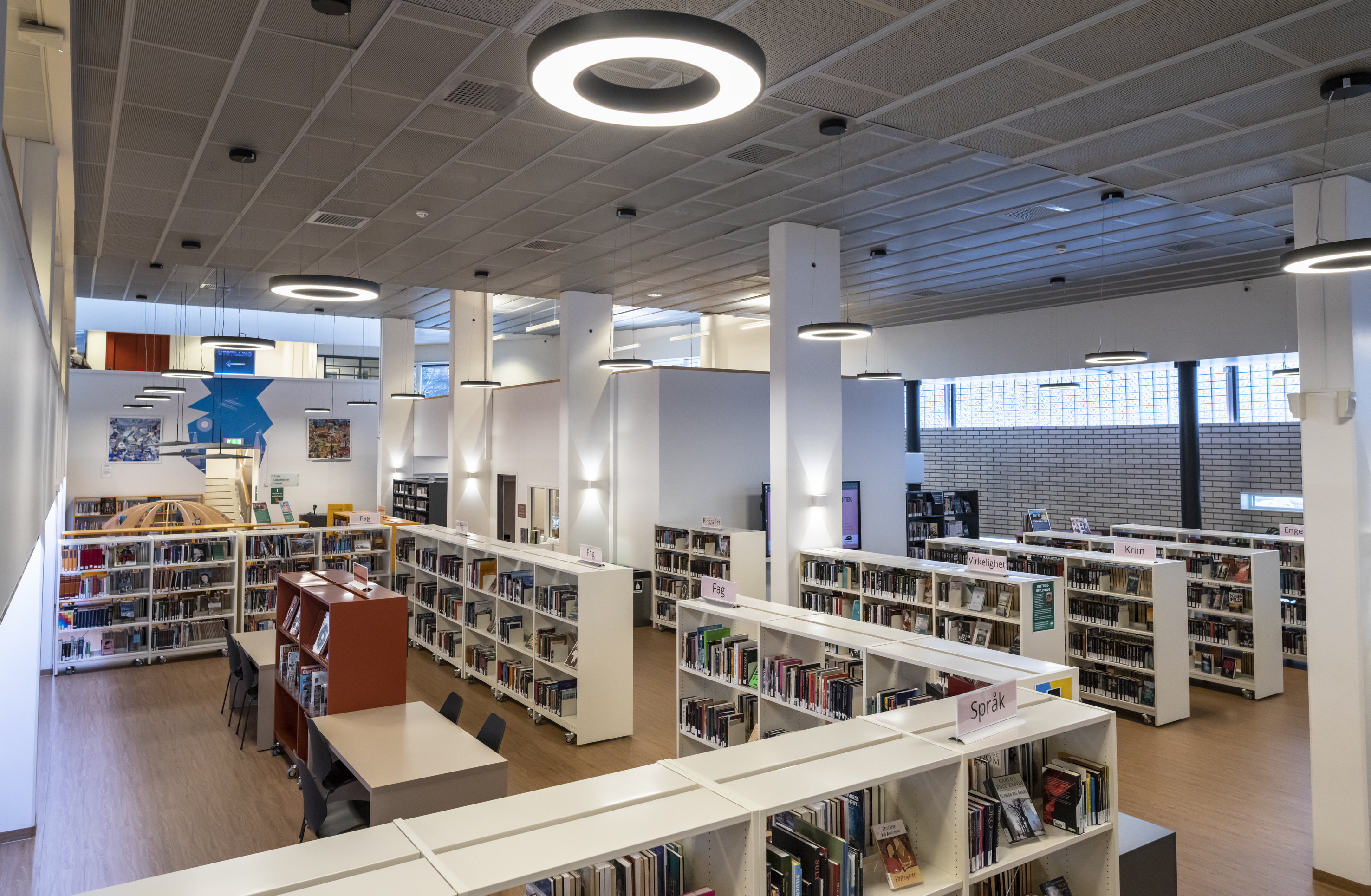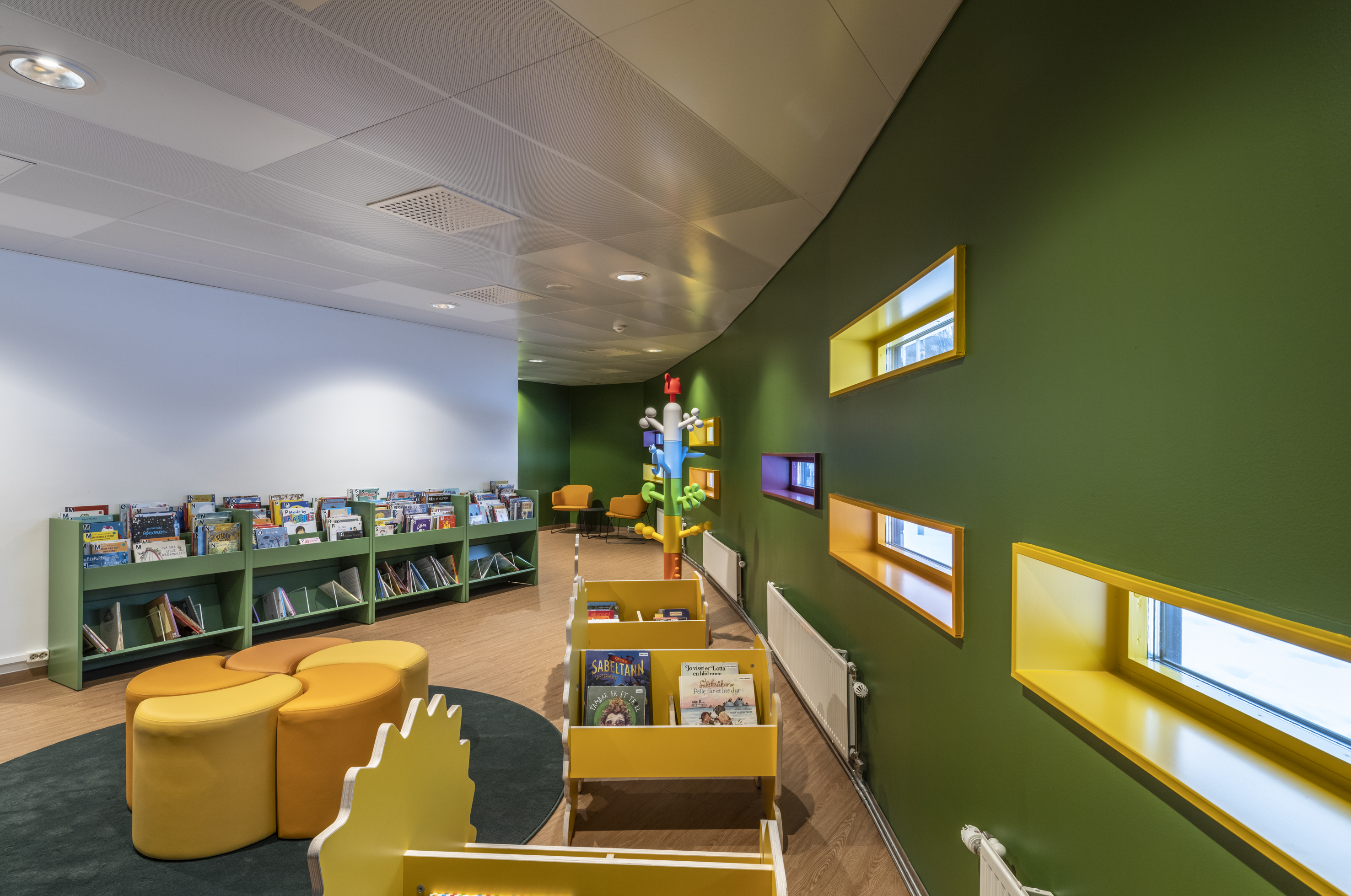 The library in Ullensaker Municipality is located in the town of Jessheim. On 5th January 2023, it was officially reopened after extensive renovation, where all the furniture and shelving systems have been renewed and coloured in shades that harmonize with the basic elements of the recycled premises.
