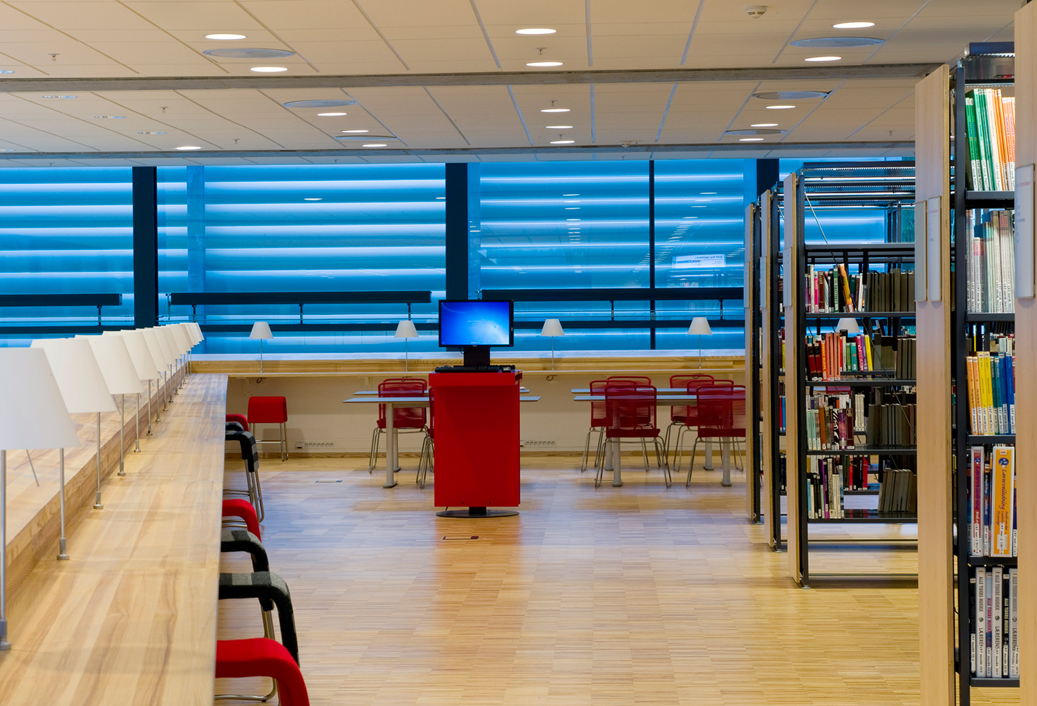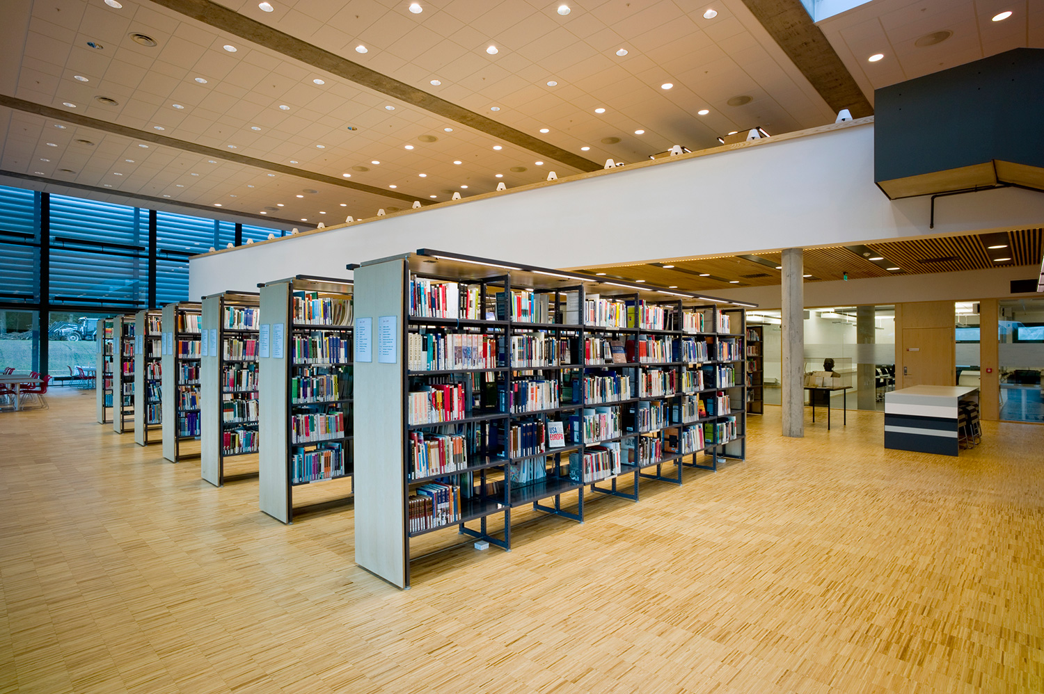 The library is essentially designed for learning. The result includes access to the latest information resources, professional guidance and service. The two-storey building offers attractive architecture and different kinds of learning environments and workstations for inspiring studies.