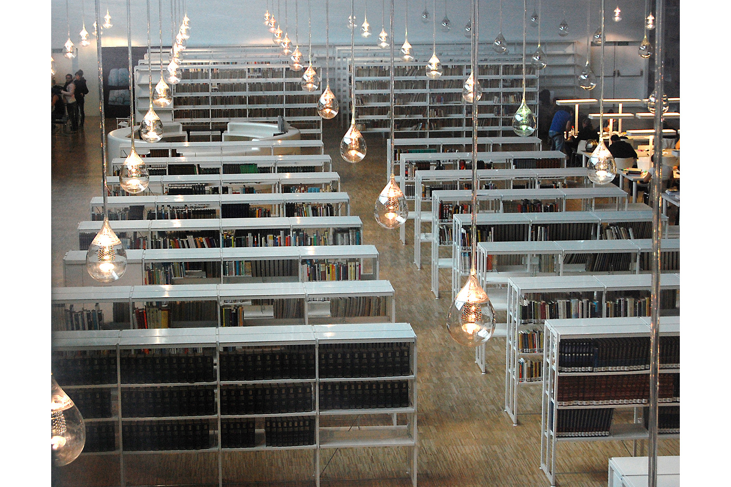 The library features the Opal Shelving System in white and without end panels to promote a light expression.