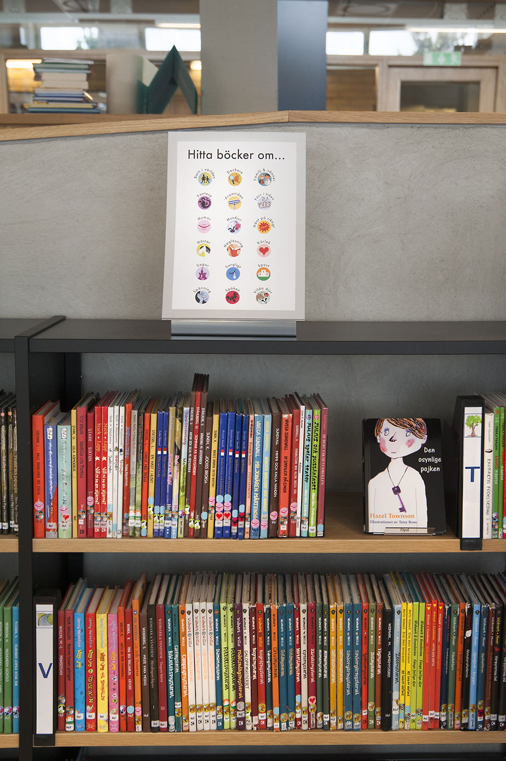 The library especially focuses on displaying and making books and other material easy accessible by using symbol labels to mark book spines. Display stands in an attention-grabbing format such as Owl, Rabbit, Wolf and Lion are used as focal points for books and other media in an inspiring and enjoyable way. Next to the “easy to read” shelving system the owl family sits on the wall showing exciting book titles!