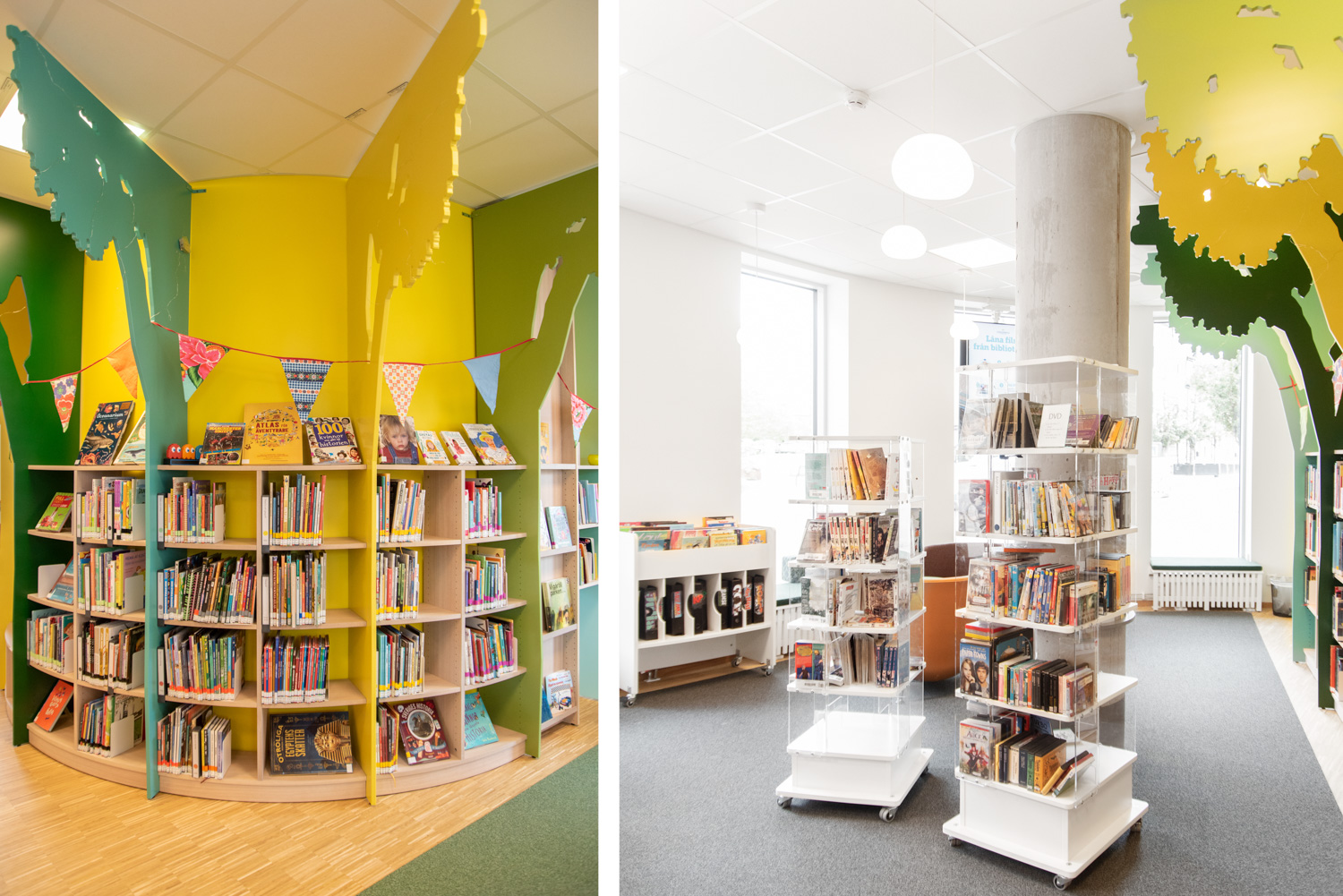 Every corner has been utilized so that there is room for contemplation, imagination and meeting facilities, while the children's department, with the customized forest shelving system, has become the eye-catcher they dreamed of from the beginning.