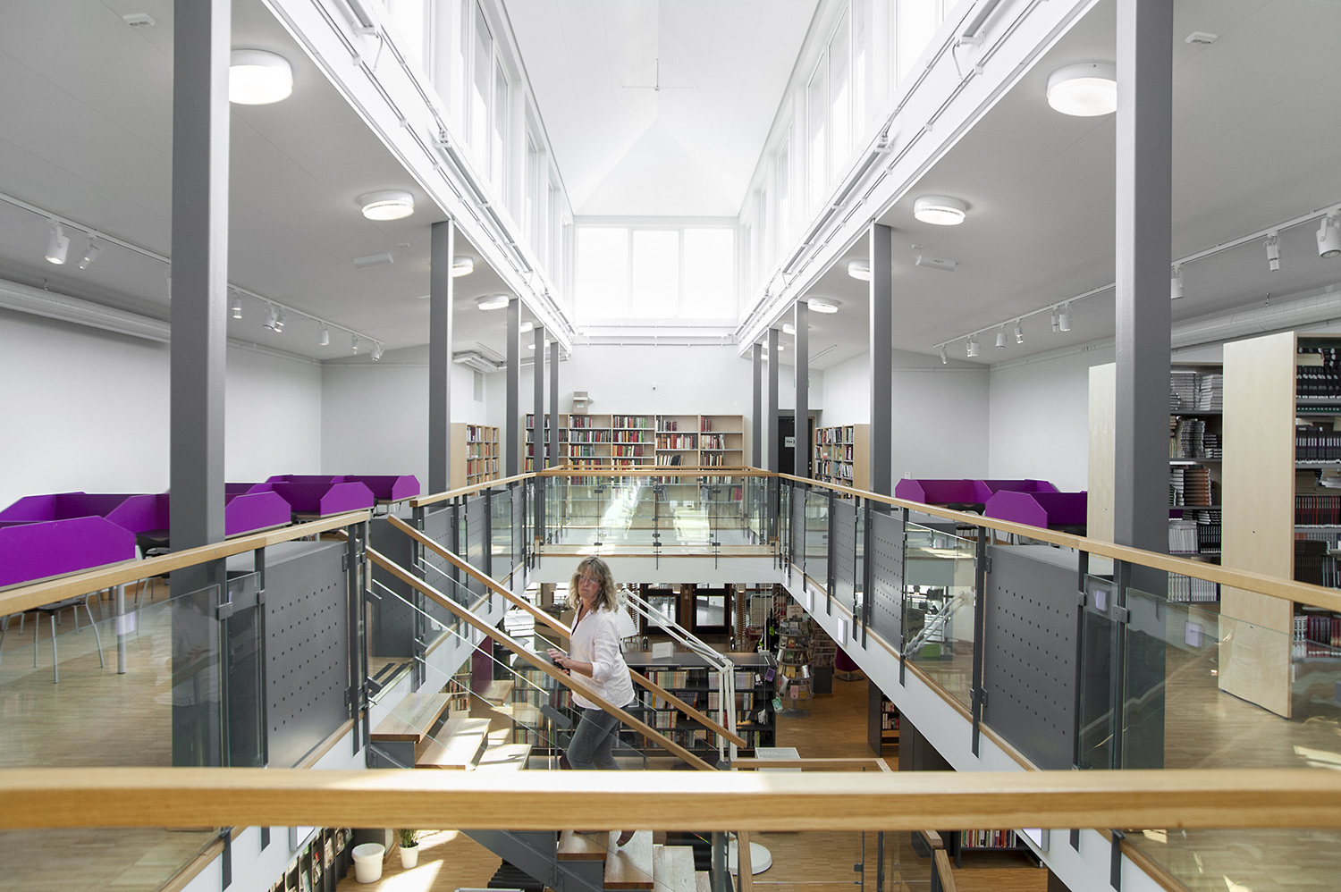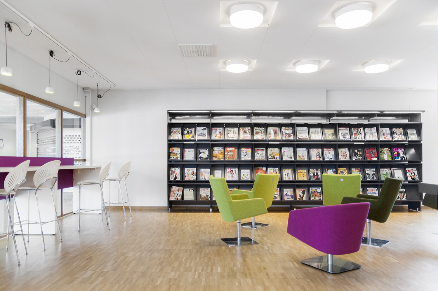 This library is an integrated high school and public library located at Sunds High School in Vellinge. With its space and opportunity to both study and relax, this is an excellent work space for both students and the public.