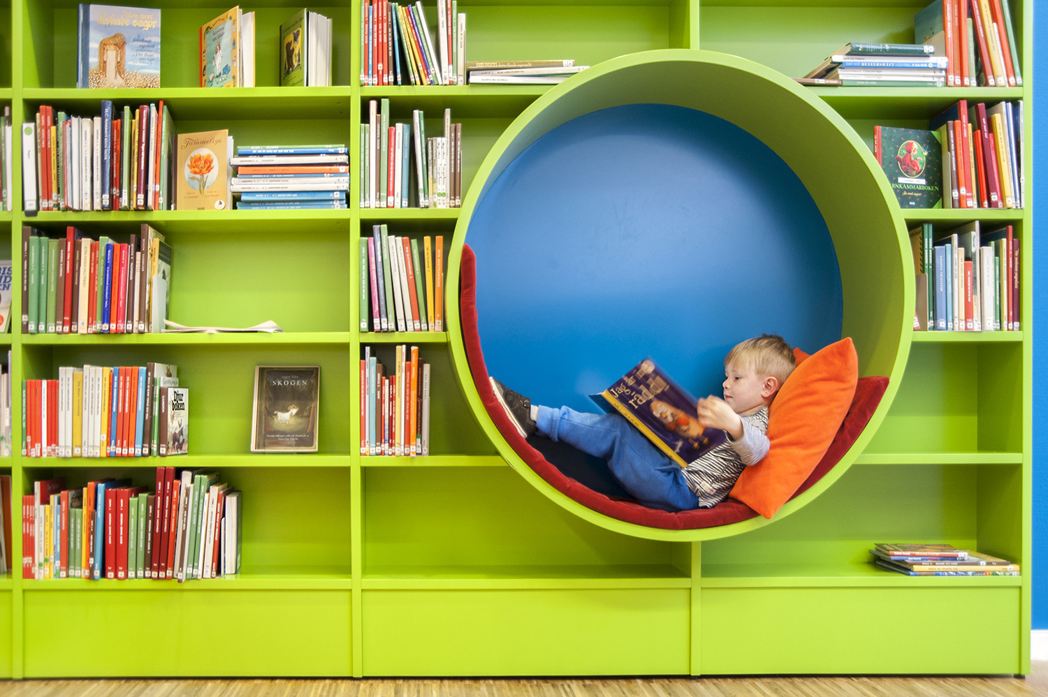 Ystad Public Library is the most visited cultural meeting place in Ystad. The building is designed by architect Claes B Persson and was opened in 1983, but has undergone a major renovation during 2016. The library has focused on making the new children's department attractive to the younger users; including the large shelving system in bright colours with integrated seating, that invites you to sit down and read, along with other seating and cozy areas, where children and young people can relax.