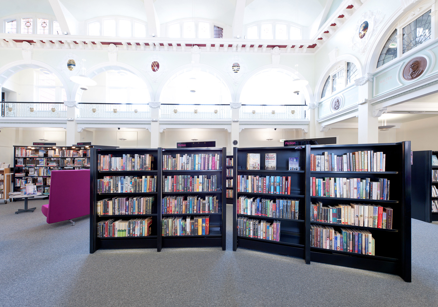 The library restoration works have resulted in brighter, more welcoming space for all users and visitors. The shelving and furniture specified along with the colours selected have been carefully chosen to not only blend in with the wonderful period features of the building but to also offer the modern ambience that any new build library would strive to offer. Whether visitors to the library are on a journey of learning, exploration and discovery, or simply after some time, the newly refurbished Eccles library has got something for everyone.