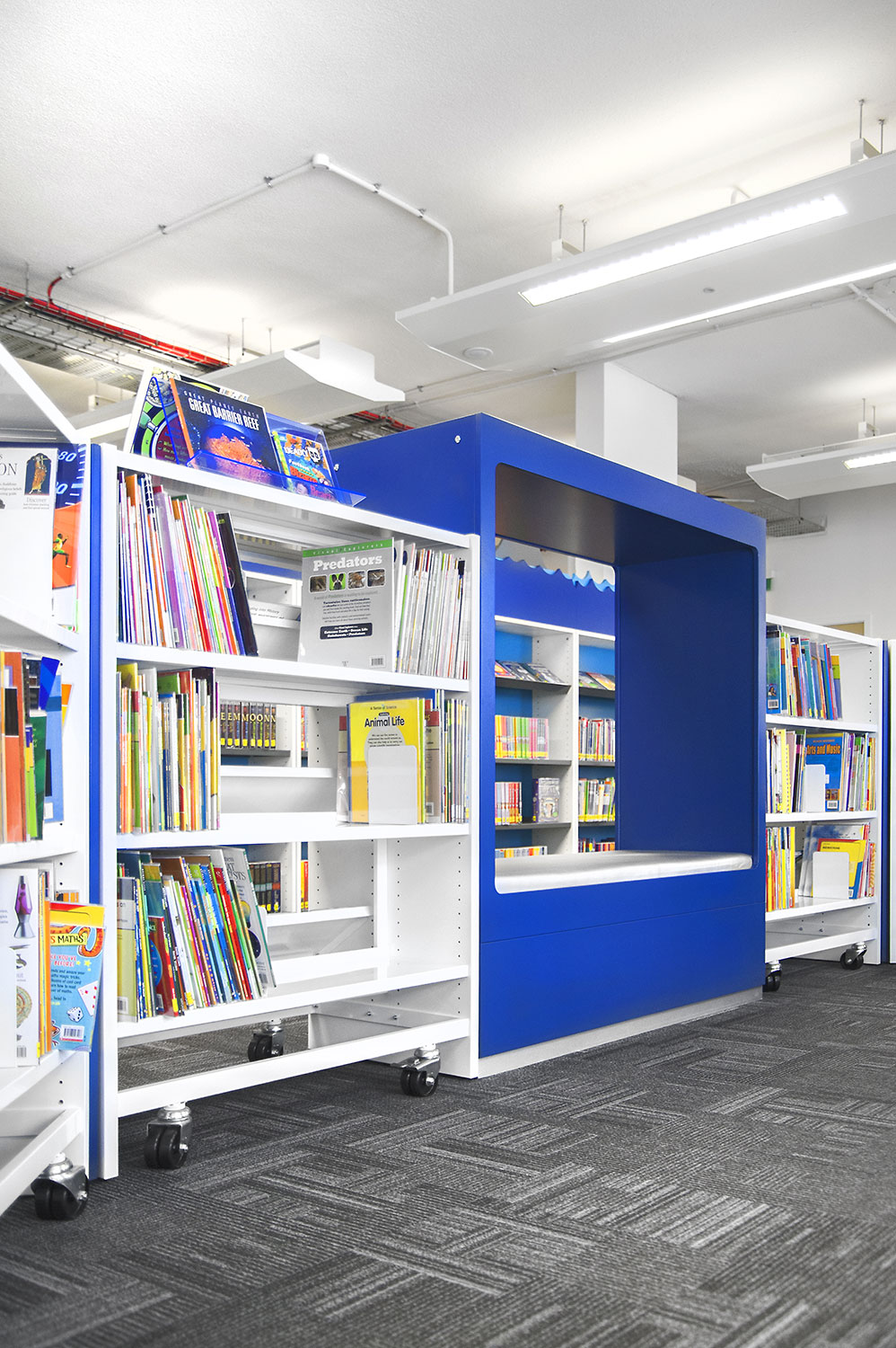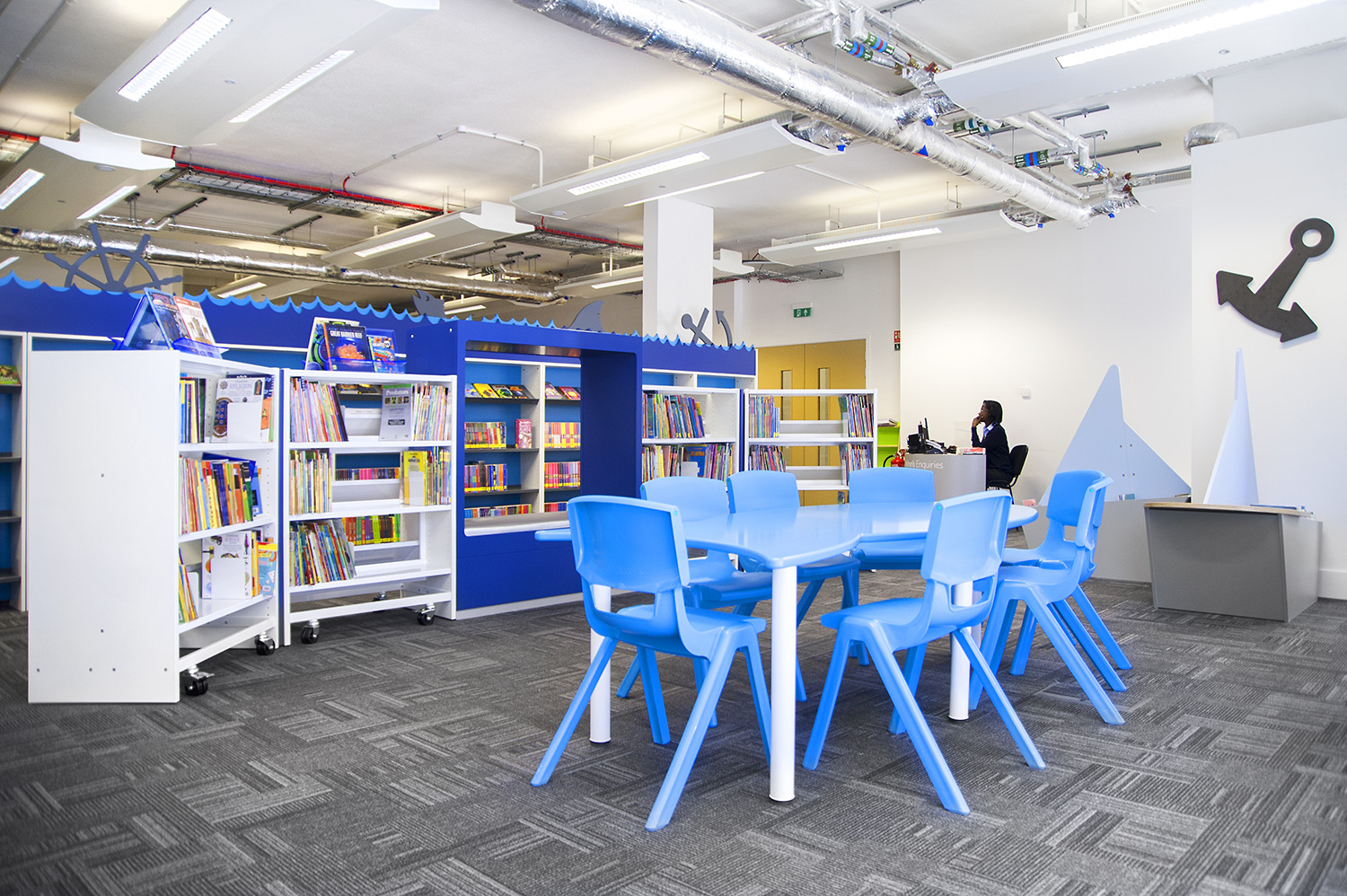 Following a maritime theme, to incorporate the rich history of Greenwich, the children’s area of the library has been fitted with boat shaped browsers and the shelving includes waves, anchors and port-holes for children to enjoy. The children’s library also has PC’s and tablets available for the younger visitors.