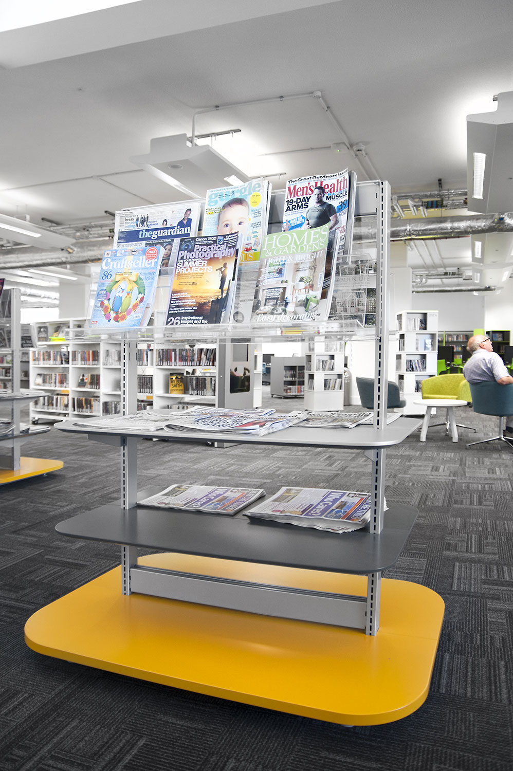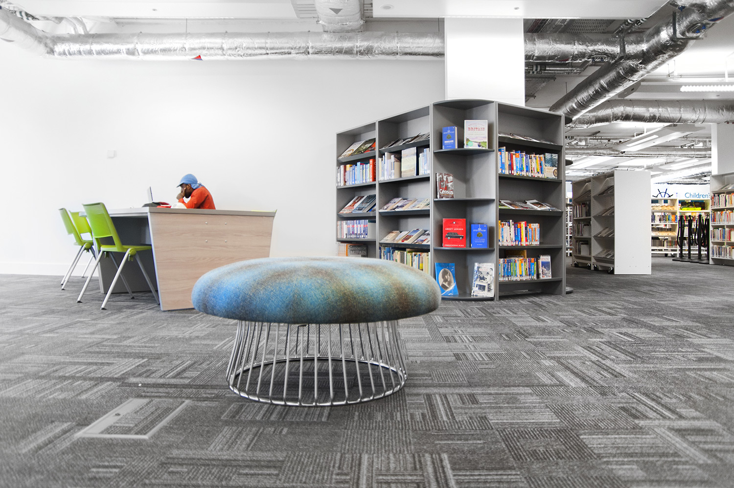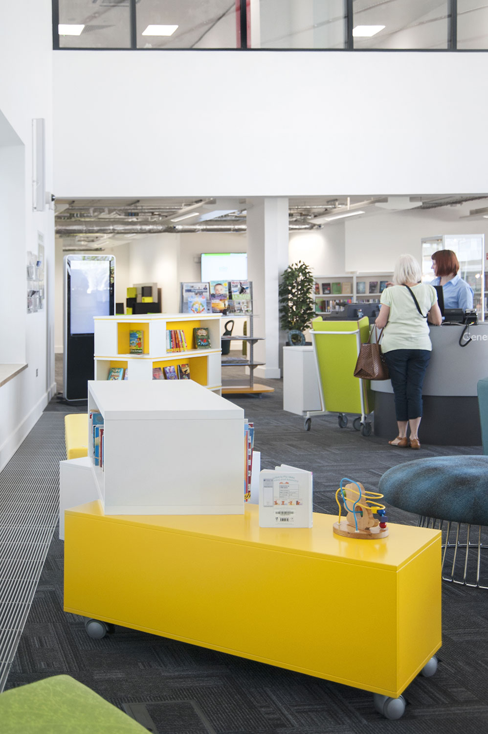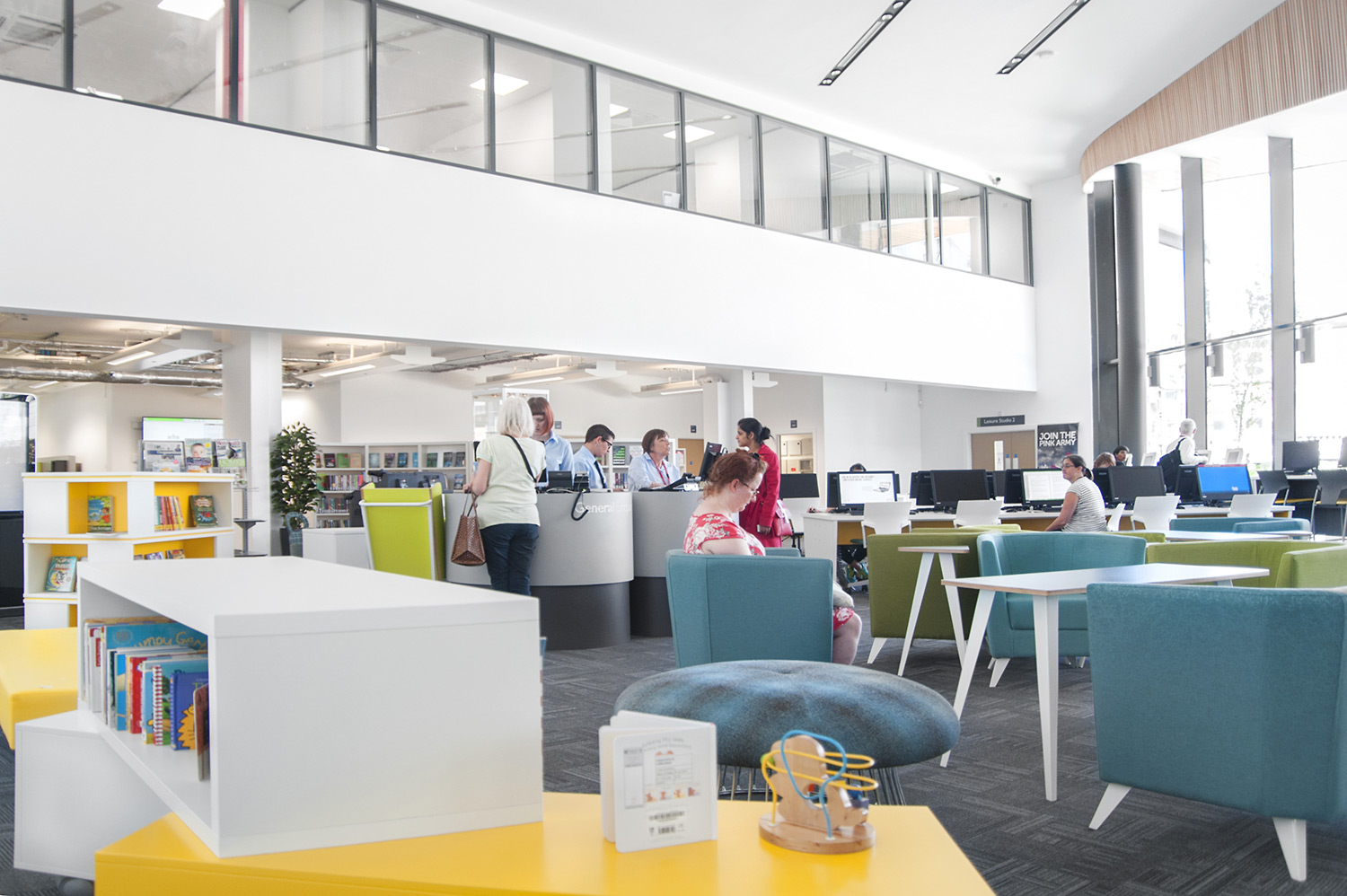 Throughout the library, digital end panels allow customers to browse for specific books and authors as well as giving access to the library’s app which highlights new books and facilities that are available for each customer.