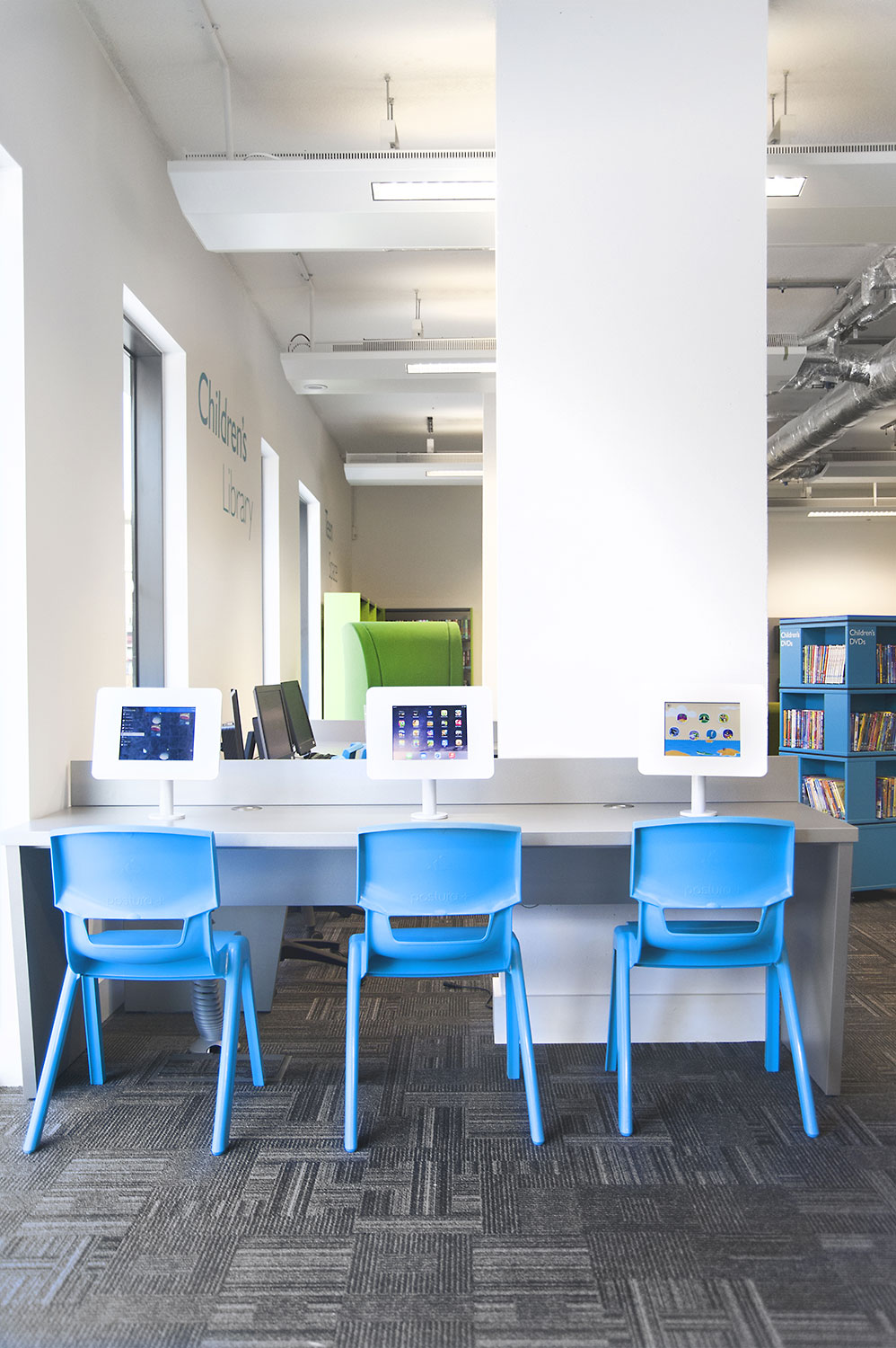 Each area of the library is clearly defined to allow multi-purpose use for all ages and to encourage the local community’s creativity to flourish. Customer’s have access to a world of technology to advance their skills and knowledge in a variety of ways.