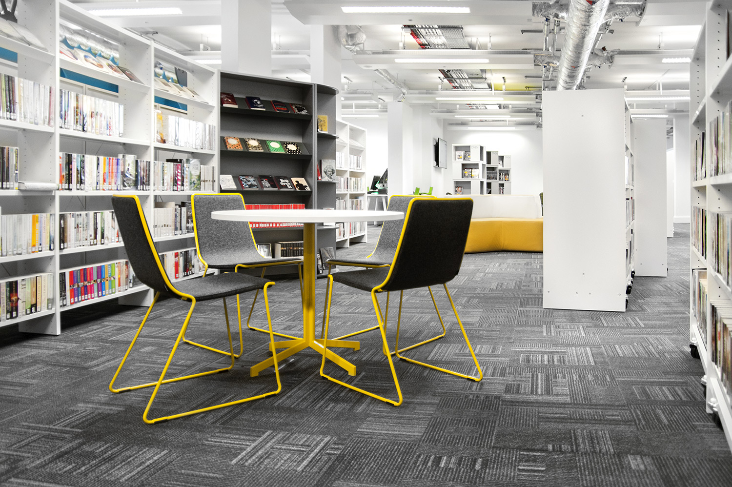 Thedesignconcept introduced stimulating and inspirational furniture, gadget bars and digital technology to this exciting library space.