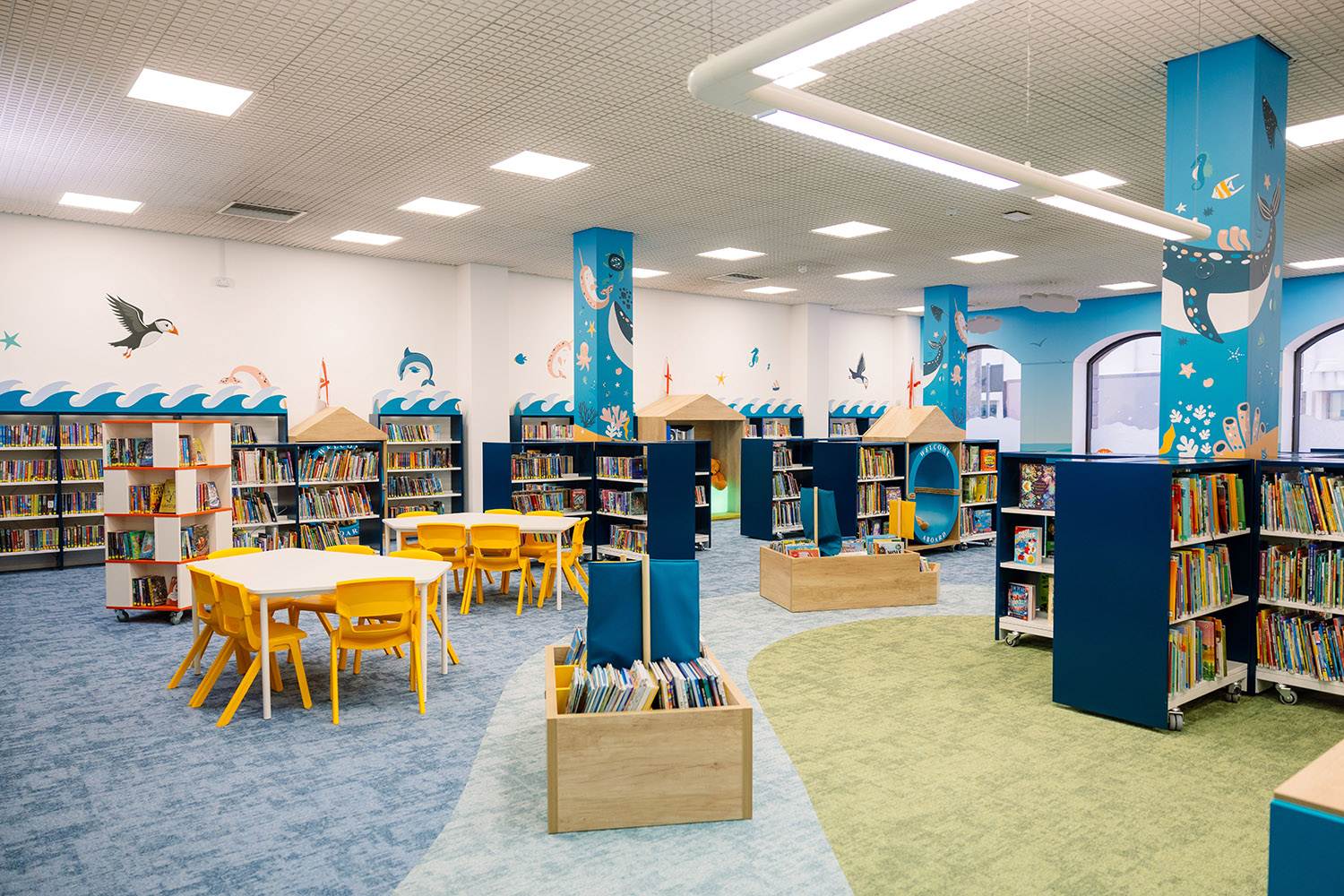 The much loved and heavily used Children’s Library in St. Helier’s Town Library was starting to look decidedly tired and dated, so when funding was identified early in 2024 the time was right for a refit. We believe that when a child walks into a library it should be an unforgettable experience. To inspire little ones to keep coming back to their library to read, learn and play, it is important that a children’s library is colourful and exciting. For us, a children’s library represents an opportunity to create a magical world of discovery by capturing their imagination using bold colours, fun graphics, and customised furniture. A child may be a new library user, but the perfect child’s zone can inspire and create a life-long library user.