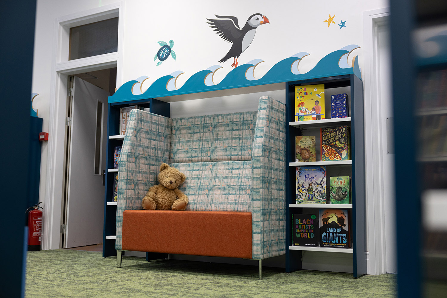 The focus was very much on the children’s area because children and families are very much at the heart of the library service. Regular programmes of baby bounce sessions, story times, author visits and holiday activities underpin a key service supporting children’s literacy. It’s important to the Jersey team that children associated reading and the library with high quality services in a welcoming, safe and inspirational environment.