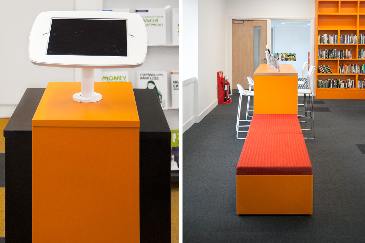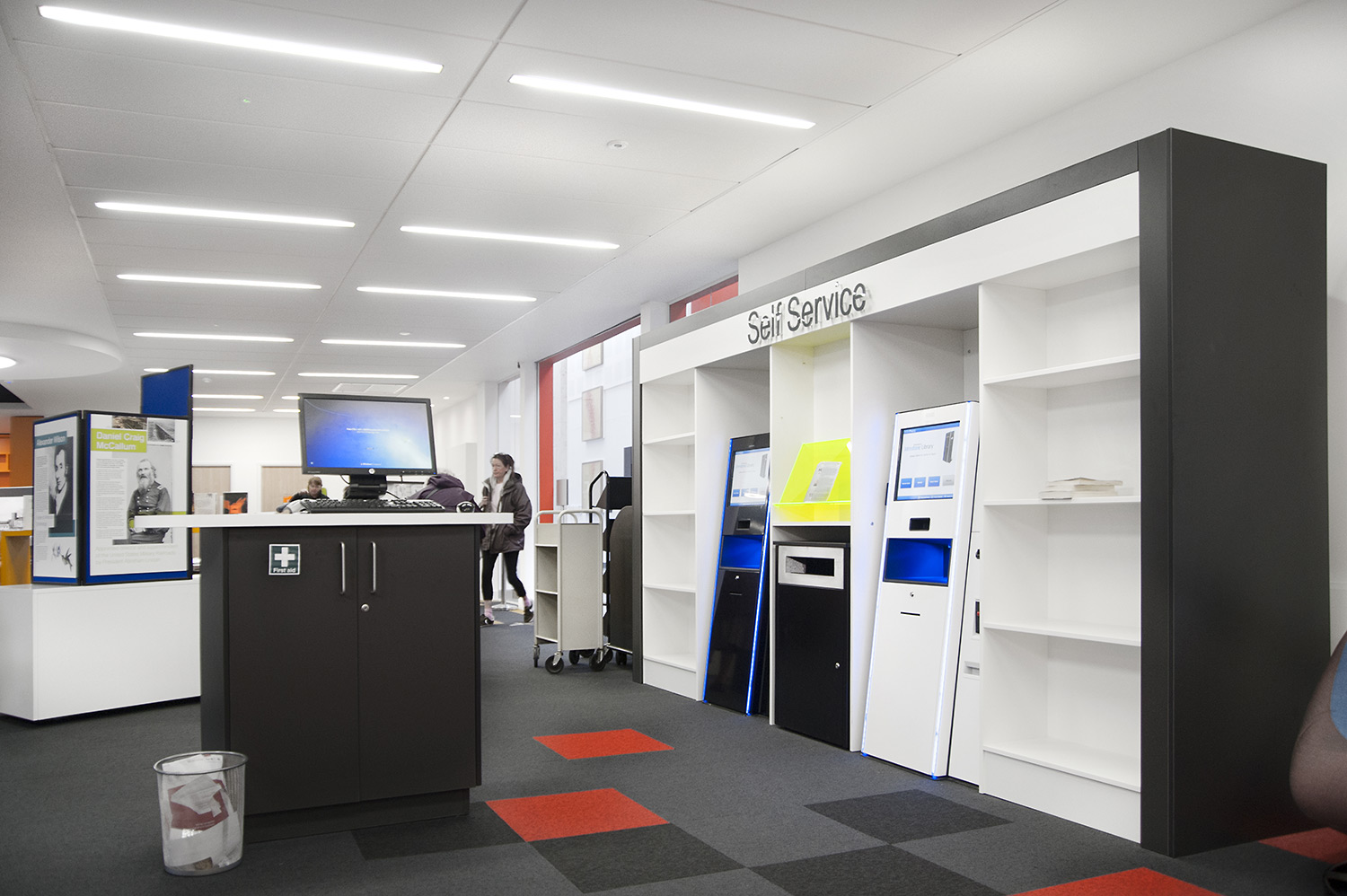 The Design Concept were instrumental in the design of this library together with the flooring, lighting and graphics to ensure we delivered a cohesive design. We worked closely with the architects Holmes Miller and members of the library staff to ensure we were able to meet the library brief.