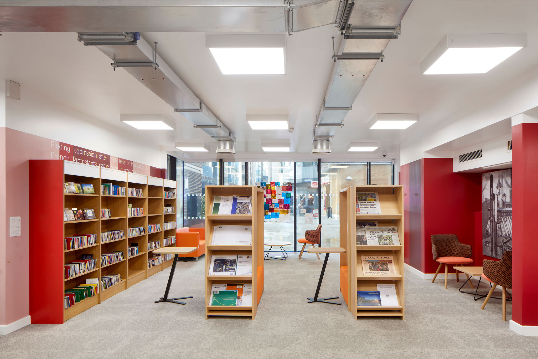 The Artizan Street Library & Community Centre is built beneath a housing estate tower block right in the heart of the City of London. The library staff at Artizan Street provide valuable frontline housing services, responding to residents’ enquiries about car parking, payments, and many other day-to-day housing needs.